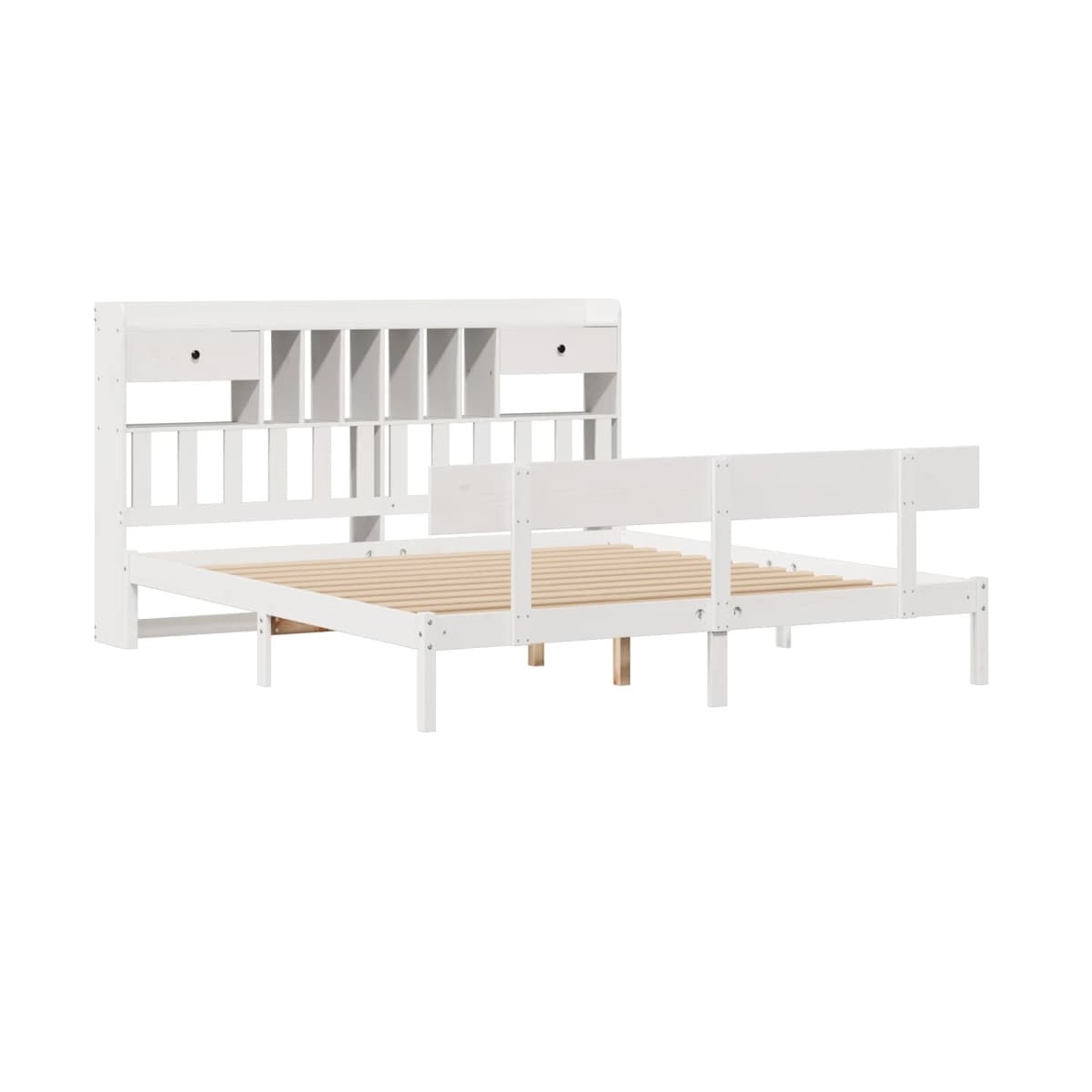 ¡Consigue una mejor noche de sueño reparador con esta cama con estantería! Es un aporte acogedor para cualquier dormitorio. Estructura estable y duradera: La madera de pino maciza es conocida por su resistencia y durabilidad. Sus vetas rectas y sus característicos nudos contribuyen a su encanto rústico.Somier de láminas para un soporte óptimo: La estructura de cama está equipada con un somier de láminas para el apoyo y la transpirabilidad del colchón.Amplio espacio de almacenamiento: El cabecero de estantería ofrece un amplio espacio de almacenamiento para mantener libros, artículos decorativos o pertenencias personales al alcance de la mano, lo que reduce el desorden en el dormitorio.Práctico pie de cama: El pie de cama no solo contribuye a la estabilidad general del marco de la cama, proporcionando un entorno seguro para dormir, sino que también asegura su colchón en su lugar y evita que las mantas, sábanas y otra ropa de cama se caigan del extremo de la cama, manteniendo una apariencia ordenada.Ahorro de espacio: Este cabecero es una opción de ahorro de espacio que puede sustituir la necesidad de una mesilla de noche, ayudando a maximizar el espacio de tu dormitorio, y haciéndolo ideal para espacios pequeños o limitados. Información útil:El colchón no está incluido con la cama. Disponemos de una variada selección de colchones. Puedes echar un vistazo a nuestra tienda para buscar el colchón correspondiente.