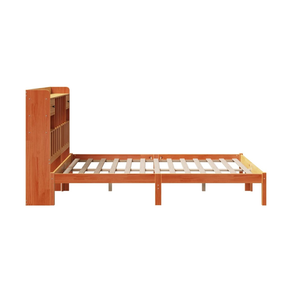 ¡Consigue una mejor noche de sueño reparador con esta cama con estantería! Es un aporte acogedor para cualquier dormitorio. Estructura estable y duradera: La madera de pino maciza es conocida por su resistencia y durabilidad. Sus vetas rectas y sus característicos nudos contribuyen a su encanto rústico.Somier de láminas para un soporte óptimo: La estructura de cama está equipada con un somier de láminas para el apoyo y la transpirabilidad del colchón.Amplio espacio de almacenamiento: El cabecero de estantería ofrece un amplio espacio de almacenamiento para mantener libros, artículos decorativos o pertenencias personales al alcance de la mano, lo que reduce el desorden en el dormitorio.Ahorro de espacio: Este cabecero es una opción de ahorro de espacio que puede sustituir la necesidad de una mesilla de noche, ayudando a maximizar el espacio de tu dormitorio, y haciéndolo ideal para espacios pequeños o limitados. Información útil:El colchón no está incluido con la cama. Disponemos de una variada selección de colchones. Puedes echar un vistazo a nuestra tienda para buscar el colchón correspondiente.