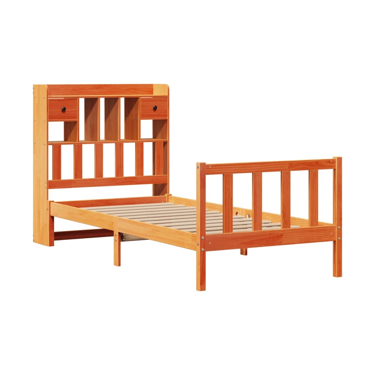 ¡Consigue una mejor noche de sueño reparador con esta cama con estantería! Es un aporte acogedor para cualquier dormitorio. Estructura estable y duradera: La madera de pino maciza es conocida por su resistencia y durabilidad. Sus vetas rectas y sus característicos nudos contribuyen a su encanto rústico.Somier de láminas para un soporte óptimo: La estructura de cama está equipada con un somier de láminas para el apoyo y la transpirabilidad del colchón.Amplio espacio de almacenamiento: El cabecero de estantería ofrece un amplio espacio de almacenamiento para mantener libros, artículos decorativos o pertenencias personales al alcance de la mano, lo que reduce el desorden en el dormitorio.Práctico pie de cama: El pie de cama no solo contribuye a la estabilidad general del marco de la cama, proporcionando un entorno seguro para dormir, sino que también asegura su colchón en su lugar y evita que las mantas, sábanas y otra ropa de cama se caigan del extremo de la cama, manteniendo una apariencia ordenada.Ahorro de espacio: Este cabecero es una opción de ahorro de espacio que puede sustituir la necesidad de una mesilla de noche, ayudando a maximizar el espacio de tu dormitorio, y haciéndolo ideal para espacios pequeños o limitados. Información útil:El colchón no está incluido con la cama. Disponemos de una variada selección de colchones. Puedes echar un vistazo a nuestra tienda para buscar el colchón correspondiente.