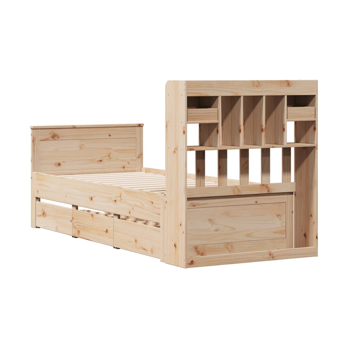 ¡Consigue una mejor noche de sueño reparador con esta cama con estantería! Es un aporte acogedor para cualquier dormitorio. Estructura estable y duradera: La madera de pino maciza es conocida por su resistencia y durabilidad. Sus vetas rectas y sus característicos nudos contribuyen a su encanto rústico.Somier de láminas para un soporte óptimo: La estructura de cama está equipada con un somier de láminas para el apoyo y la transpirabilidad del colchón.Amplio espacio de almacenamiento: El cabecero de estantería ofrece un amplio espacio de almacenamiento para mantener libros, artículos decorativos o pertenencias personales al alcance de la mano, lo que reduce el desorden en el dormitorio.Práctico pie de cama: El pie de cama no solo contribuye a la estabilidad general del marco de la cama, proporcionando un entorno seguro para dormir, sino que también asegura su colchón en su lugar y evita que las mantas, sábanas y otra ropa de cama se caigan del extremo de la cama, manteniendo una apariencia ordenada.Ahorro de espacio: Este cabecero es una opción de ahorro de espacio que puede sustituir la necesidad de una mesilla de noche, ayudando a maximizar el espacio de tu dormitorio, y haciéndolo ideal para espacios pequeños o limitados. Información útil:El colchón no está incluido con la cama. Disponemos de una variada selección de colchones. Puedes echar un vistazo a nuestra tienda para buscar el colchón correspondiente.
