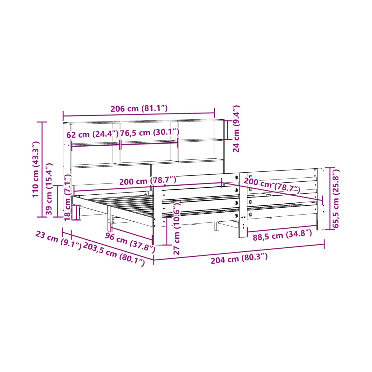 Consigue un sueño más reparador con esta estructura de cama. Es un aporte acogedor para cualquier dormitorio. Estructura estable y duradera: La madera de pino maciza es conocida por su resistencia y durabilidad. Sus vetas rectas y sus característicos nudos contribuyen a su encanto rústico.Aprovecha al máximo el espacio: Con 6 prácticos compartimentos, este cabecero es una opción que ahorra espacio y puede sustituir la necesidad de una mesita de noche, ayudando a maximizar el espacio de tu dormitorio y haciéndolo ideal para espacios pequeños o limitados.Cabecero versátil: Esta estructura de cama viene con un cabecero que proporciona un excelente soporte para la espalda cuando te sientas en la cama para leer o ver la televisión, a la vez que sirve como elemento decorativo.Somier de láminas para un soporte óptimo: La estructura de cama está equipada con un somier de láminas para el apoyo y la transpirabilidad del colchón. Información útil:El colchón no está incluido con la cama. Disponemos de una variada selección de colchones. Puedes echar un vistazo a nuestra tienda para buscar el colchón correspondiente.