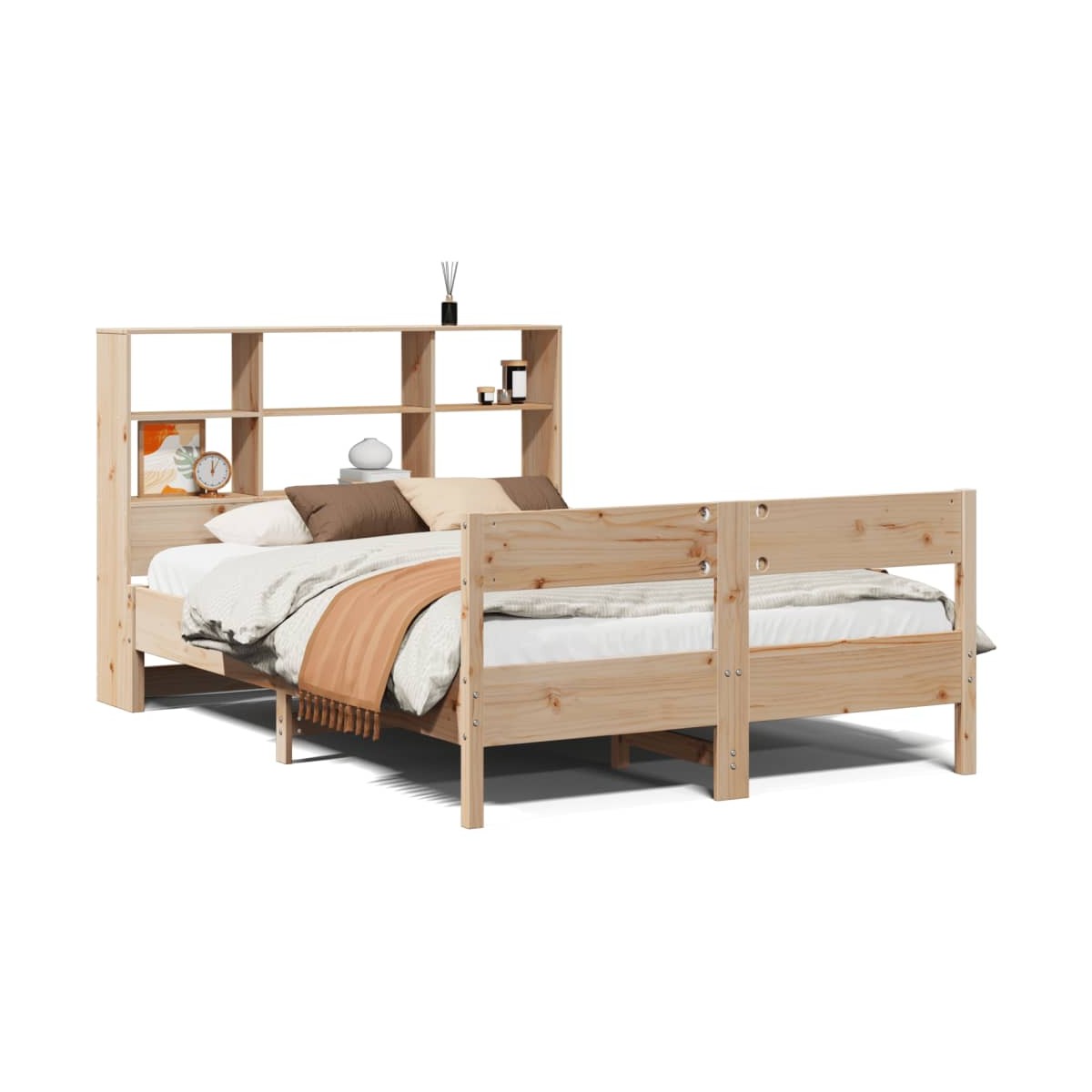 ¡Consigue una mejor noche de sueño reparador con esta cama con estantería! Es un aporte acogedor para cualquier dormitorio. Estructura estable y duradera: La madera de pino maciza es conocida por su resistencia y durabilidad. Sus vetas rectas y sus característicos nudos contribuyen a su encanto rústico. Somier de láminas para un soporte óptimo: La estructura de cama está equipada con un somier de láminas para el apoyo y la transpirabilidad del colchón. Amplio espacio de almacenamiento: El cabecero de estantería ofrece un amplio espacio de almacenamiento para mantener libros, artículos decorativos o pertenencias personales al alcance de la mano, lo que reduce el desorden en el dormitorio. Práctico pie de cama: El pie de cama no solo contribuye a la estabilidad general del marco de la cama, proporcionando un entorno seguro para dormir, sino que también asegura su colchón en su lugar y evita que las mantas, sábanas y otra ropa de cama se caigan del extremo de la cama, manteniendo una apariencia ordenada. Ahorro de espacio: Este cabecero es una opción de ahorro de espacio que puede sustituir la necesidad de una mesilla de noche, ayudando a maximizar el espacio de tu dormitorio, y haciéndolo ideal para espacios pequeños o limitados. Información útil:El colchón no está incluido con la cama. Disponemos de una variada selección de colchones. Puedes echar un vistazo a nuestra tienda para buscar el colchón correspondiente.