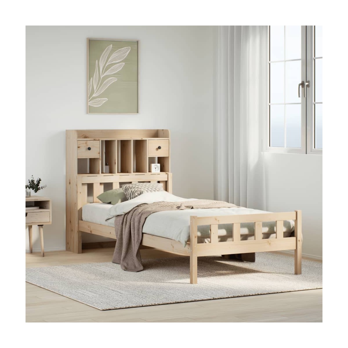 ¡Consigue una mejor noche de sueño reparador con esta cama con estantería! Es un aporte acogedor para cualquier dormitorio. Estructura estable y duradera: La madera de pino maciza es conocida por su resistencia y durabilidad. Sus vetas rectas y sus característicos nudos contribuyen a su encanto rústico.Somier de láminas para un soporte óptimo: La estructura de cama está equipada con un somier de láminas para el apoyo y la transpirabilidad del colchón.Amplio espacio de almacenamiento: El cabecero de estantería ofrece un amplio espacio de almacenamiento para mantener libros, artículos decorativos o pertenencias personales al alcance de la mano, lo que reduce el desorden en el dormitorio.Práctico pie de cama: El pie de cama no solo contribuye a la estabilidad general del marco de la cama, proporcionando un entorno seguro para dormir, sino que también asegura su colchón en su lugar y evita que las mantas, sábanas y otra ropa de cama se caigan del extremo de la cama, manteniendo una apariencia ordenada.Ahorro de espacio: Este cabecero es una opción de ahorro de espacio que puede sustituir la necesidad de una mesilla de noche, ayudando a maximizar el espacio de tu dormitorio, y haciéndolo ideal para espacios pequeños o limitados. Información útil:El colchón no está incluido con la cama. Disponemos de una variada selección de colchones. Puedes echar un vistazo a nuestra tienda para buscar el colchón correspondiente.