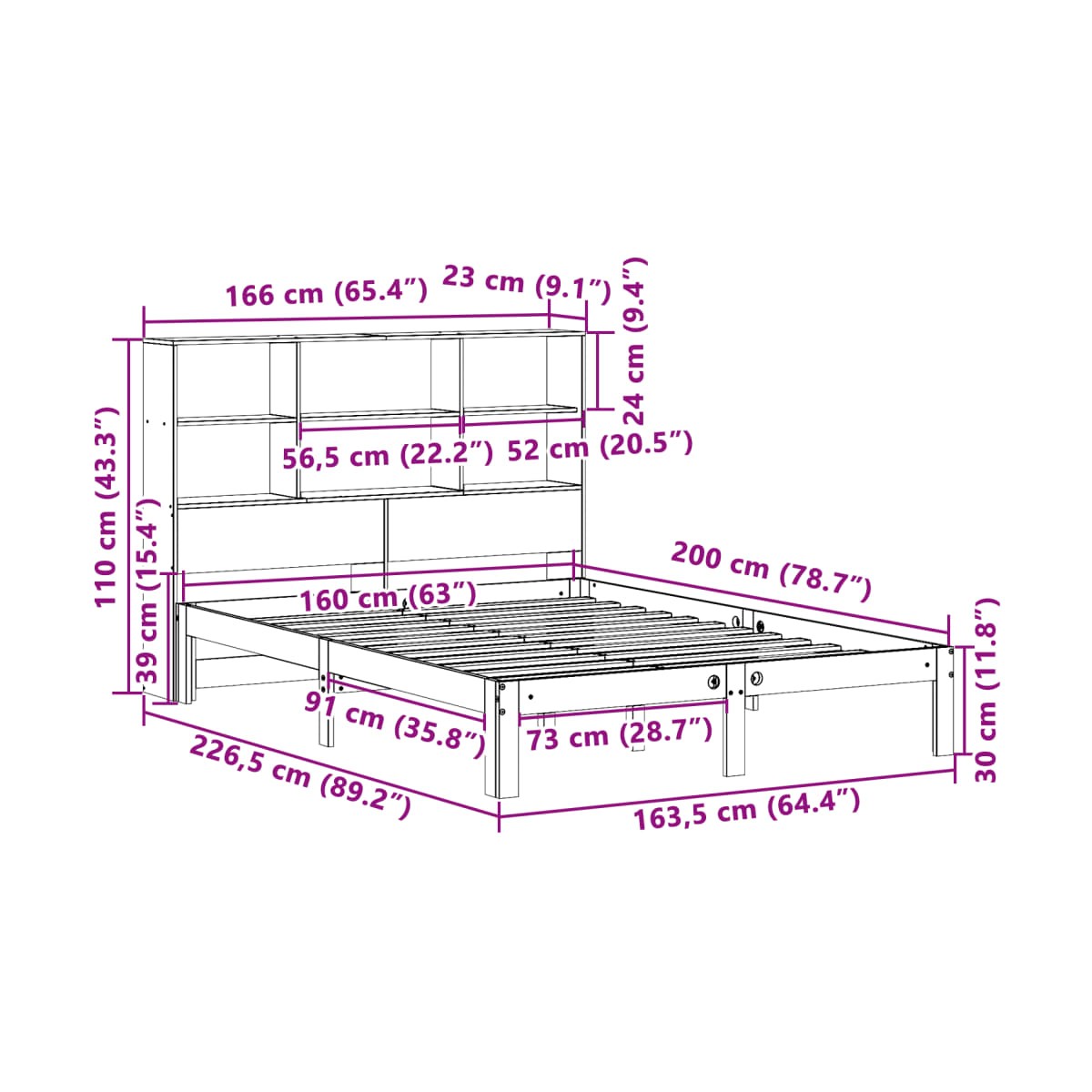 ¡Consigue una mejor noche de sueño reparador con esta cama con estantería! Es un aporte acogedor para cualquier dormitorio. Estructura estable y duradera: La madera de pino maciza es conocida por su resistencia y durabilidad. Sus vetas rectas y sus característicos nudos contribuyen a su encanto rústico.Somier de láminas para un soporte óptimo: La estructura de cama está equipada con un somier de láminas para el apoyo y la transpirabilidad del colchón.Amplio espacio de almacenamiento: El cabecero de estantería ofrece un amplio espacio de almacenamiento para mantener libros, artículos decorativos o pertenencias personales al alcance de la mano, lo que reduce el desorden en el dormitorio.Ahorro de espacio: Este cabecero es una opción de ahorro de espacio que puede sustituir la necesidad de una mesilla de noche, ayudando a maximizar el espacio de tu dormitorio, y haciéndolo ideal para espacios pequeños o limitados. Información útil:El colchón no está incluido con la cama. Disponemos de una variada selección de colchones. Puedes echar un vistazo a nuestra tienda para buscar el colchón correspondiente.