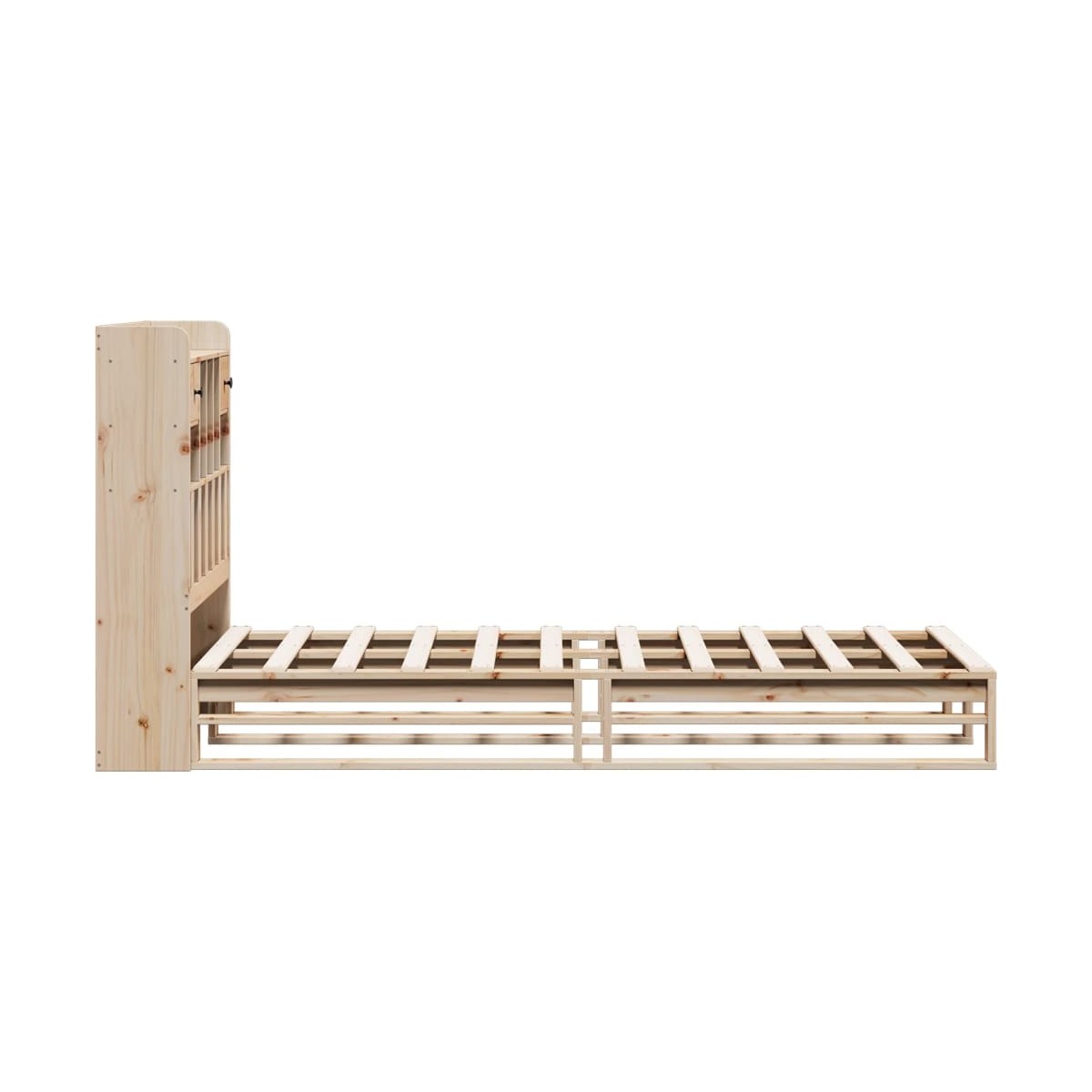 ¡Consigue una mejor noche de sueño reparador con esta cama con estantería! Es un aporte acogedor para cualquier dormitorio. Estructura estable y duradera: La madera de pino maciza es conocida por su resistencia y durabilidad. Sus vetas rectas y sus característicos nudos contribuyen a su encanto rústico.Somier de láminas para un soporte óptimo: La estructura de cama está equipada con un somier de láminas para el apoyo y la transpirabilidad del colchón.Amplio espacio de almacenamiento: El cabecero de estantería ofrece un amplio espacio de almacenamiento para mantener libros, artículos decorativos o pertenencias personales al alcance de la mano, lo que reduce el desorden en el dormitorio.Ahorro de espacio: Este cabecero es una opción de ahorro de espacio que puede sustituir la necesidad de una mesilla de noche, ayudando a maximizar el espacio de tu dormitorio, y haciéndolo ideal para espacios pequeños o limitados. Información útil:El colchón no está incluido con la cama. Disponemos de una variada selección de colchones. Puedes echar un vistazo a nuestra tienda para buscar el colchón correspondiente.