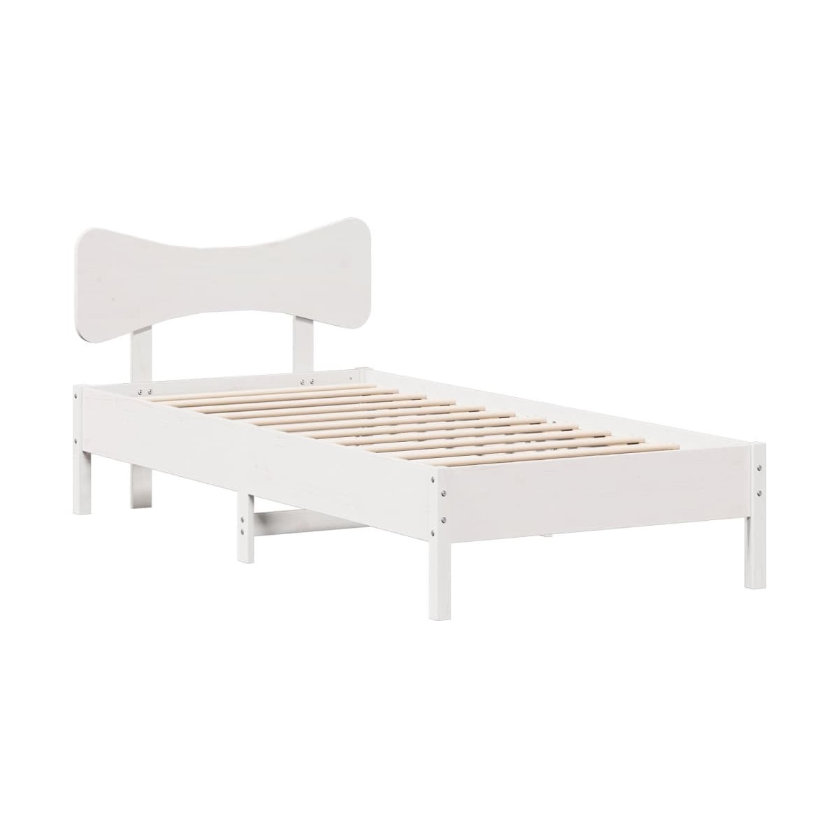 ¡Disfruta de una buena noche de sueño en esta estructura de cama de madera! Es un aporte práctico y decorativo para la casa. Madera de pino maciza: La madera de pino maciza es un bonito material natural. La madera de pino tiene vetas rectas, y los nudos dan al material su distintivo aspecto rústico.Listones robustos: Los listones de madera contrachapada proporcionan una buena distribución del peso, lo que garantiza que el colchón se mantenga en tu sitio con cada giro y vuelta del cuerpo mientras duermes.Patas de apoyo: La cama se apoya en patas robustas, que garantizan su estabilidad, seguridad y firmeza.Excelente soporte: El cabecero de la cama te proporciona un excelente soporte para la espalda cuando te sientas en la cama para leer o ver la televisión. Información útil:El colchón no está incluido con la cama. Ofrecemos una variada selección de colchones. Puedes echar un vistazo a nuestra tienda para buscar el correspondiente colchón.