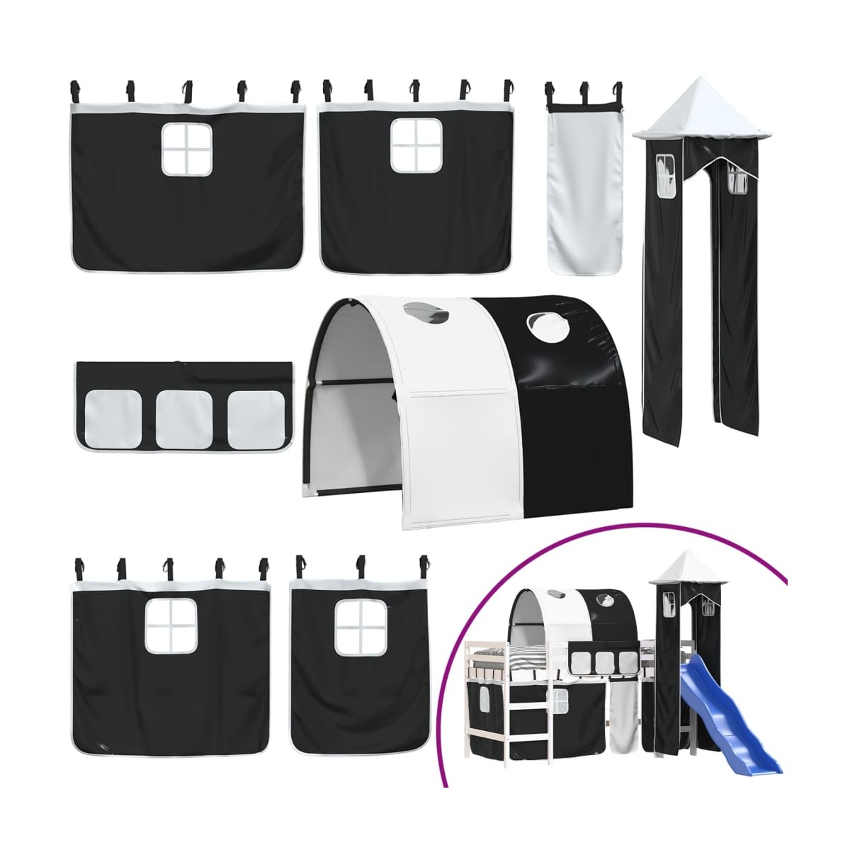 Esta cama alta para niños está hecha de madera maciza de pino y diseñada para entretener además de optimizar el espacio. Construcción estable de madera: Esta cama alta está hecha de madera de pino maciza para mayor estabilidad y durabilidad. La madera de pino tiene una veta recta, y los nudos dan a este material su característico aspecto rústico. Aprovechamiento total del espacio: Esta cama alta individual está elevada 87 cm sobre el suelo, lo que proporciona un amplio espacio debajo para almacenamiento u otras actividades. Esta zona se puede utilizar para apilar cajas de almacenaje, guardar juguetes grandes o incluso colocar un sofá infantil para leer.Mucha diversión: Puedes combinar las cortinas, el túnel y la torre con la estructura de la cama alta para crear la base secreta para tu hijo. ¡La hora de dormir será un juego y la cama será el centro de atención del dormitorio!Barandillas de seguridad: La cama intermedia para niños cuenta con barandillas de seguridad en los 4 lados, para que tu hijo pueda dormir sin preocuparse de caerse. Práctica escalera y tobogán: Esta cama nido infantil tiene un divertido tobogán que convierte la habitación en un parque dentro de casa. La combinación de una escalera para trepar y un tobogán hace que la hora de dormir resulte más animada y emocionante para los niños. Información útil:El colchón no está incluido con la cama. Disponemos de una variada selección de colchones. Puedes echar un vistazo a nuestra tienda para buscar el colchón correspondiente. Advertencia:Para evitar que vuelque, este producto debe usarse con el dispositivo de fijación a la pared incluido.
