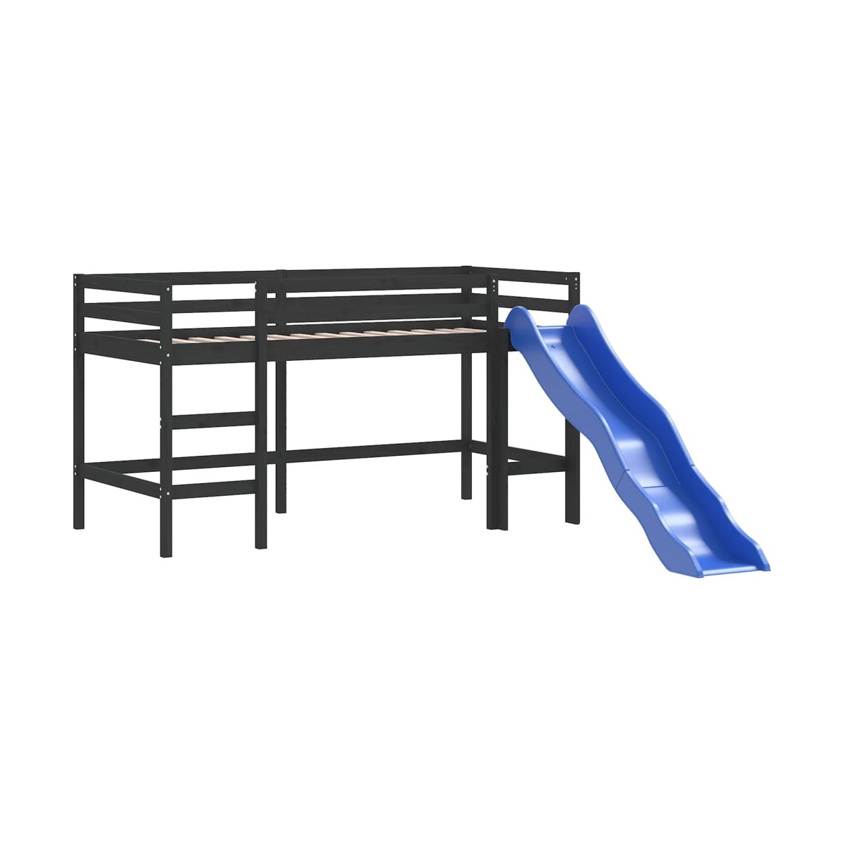 Esta cama alta para niños está hecha de madera maciza de pino y diseñada para entretener además de optimizar el espacio. Construcción estable de madera: Esta cama alta está hecha de madera de pino maciza para mayor estabilidad y durabilidad. La madera de pino tiene una veta recta, y los nudos dan a este material su característico aspecto rústico. Aprovechamiento total del espacio: Esta cama alta individual está elevada 87 cm sobre el suelo, lo que proporciona un amplio espacio debajo para almacenamiento u otras actividades. Esta zona se puede utilizar para apilar cajas de almacenaje, guardar juguetes grandes o incluso colocar un sofá infantil para leer.Mucha diversión: Puedes combinar las cortinas y la torre con la estructura de la cama alta para crear la base secreta para tu hijo. ¡La hora de dormir será un juego y la cama será el centro de atención del dormitorio!Barandillas de seguridad: La cama intermedia para niños cuenta con barandillas de seguridad en los 4 lados, para que tu hijo pueda dormir sin preocuparse de caerse. Práctica escalera y tobogán: Esta cama nido infantil tiene un divertido tobogán que convierte la habitación en un parque dentro de casa. La combinación de una escalera para trepar y un tobogán hace que la hora de dormir resulte más animada y emocionante para los niños. Información útil:El colchón no está incluido con la cama. Disponemos de una variada selección de colchones. Puedes echar un vistazo a nuestra tienda para buscar el colchón correspondiente. Advertencia:Para evitar que vuelque, este producto debe usarse con el dispositivo de fijación a la pared incluido.