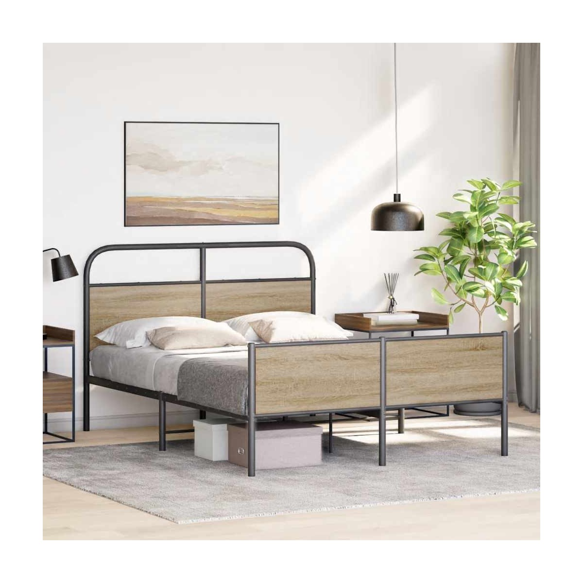 Si estás buscando una estructura de cama robusta para el dormitorio, ¡esta clásica estructura de cama con un diseño elegante y atemporal es la elección perfecta para ti! Construcción robusta de metal: La estructura de la cama está hecha de acero. El acero es un material muy duro y fuerte, que ofrece una solidez y estabilidad excepcionales.Patas estables y duraderas: Esta cama está sostenida por patas resistentes, lo que garantiza estabilidad, seguridad y firmeza.Cabecero y estribo de cama funcionales: El cabecero y el estribo de cama mantienen el colchón en su lugar. Además, la cabecera te brinda un excelente soporte para la espalda mientras estás sentado leyendo o mirando la televisión.Somier de láminas para un soporte óptimo: La estructura de cama está equipada con un somier de láminas para el apoyo y la transpirabilidad del colchón. Información útil:El colchón no está incluido con la cama. Ofrecemos una variedad de colchones. Puede visitar nuestra tienda para encontrar el colchón que mejor se adapte a sus necesidades.