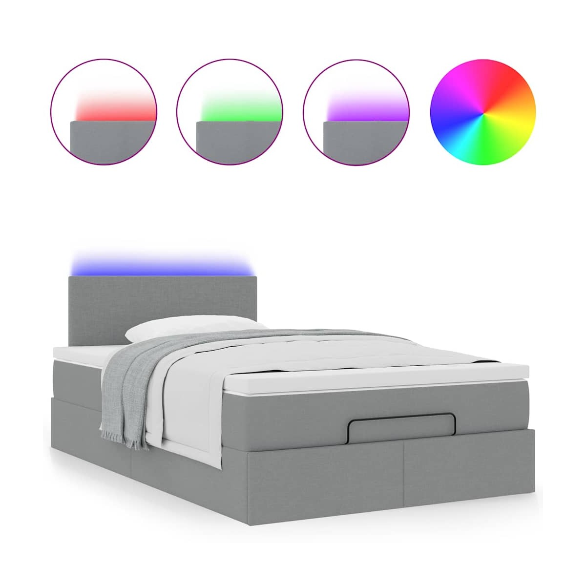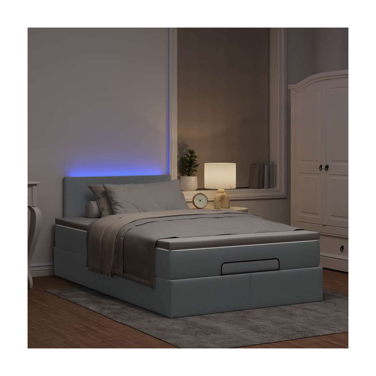 Esta cama otomana combina a la perfección la estética moderna con la funcionalidad práctica, ofreciéndole tanto una solución de almacenamiento como una experiencia de sueño cómoda. Material suave y duradero: La tela de poliéster ofrece una combinación de suavidad, transpirabilidad y durabilidad, lo que garantiza que experimentes la máxima comodidad.Colchón de muelles ensacados: El muelle ensacado individual incorporado es conocido por su altísima calidad, al tiempo que garantiza un alto nivel de durabilidad y adaptabilidad. Puede absorber eficazmente el ruido y los golpes causados por los lanzamientos y los giros.Luces LED para un ambiente agradable: Esta cama cuenta con luces LED que se pueden ajustar fácilmente para crear un espectáculo de luces personalizado. Puedes personalizar los modos, los colores y el brillo para mejorar el ambiente de tu espacio interior.Cubrecolchón cómodo: Este cubrecolchón mejora el soporte y la comodidad con su superficie suave y transpirable al tiempo que prolonga la vida útil de su colchón. Su funda extraíble permite un fácil lavado, lo que facilita el mantenimiento. Información útil:Por razones de higiene, el colchón no puede devolverse si se ha quitado o abierto el embalaje.El producto tiene un conector USB que necesita una fuente de alimentación USB certificada de 45 V (no incluida).Únicamente puedes cortar por la parte con el símbolo de las tijeras y únicamente la parte con el USB seguirá funcionando como antes.