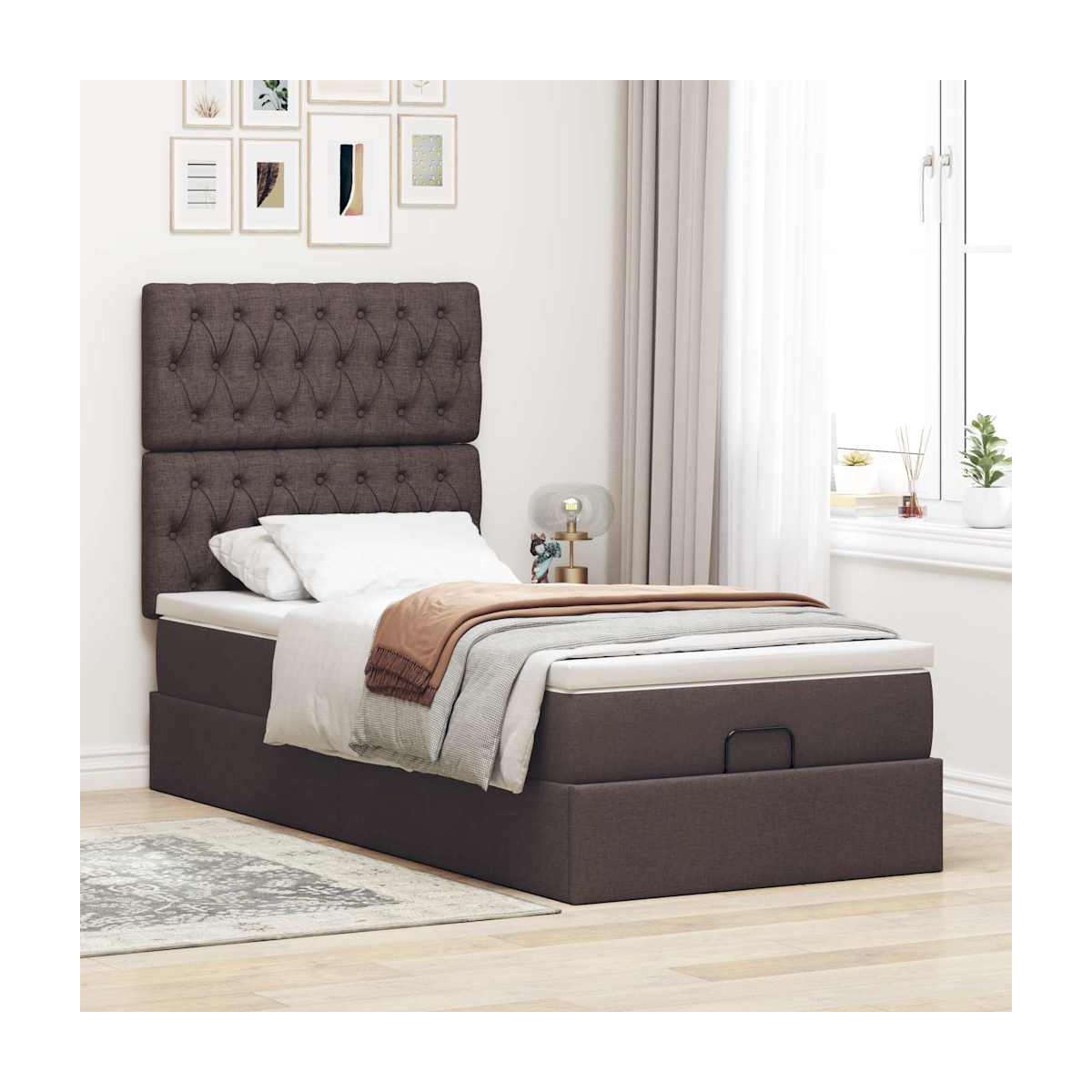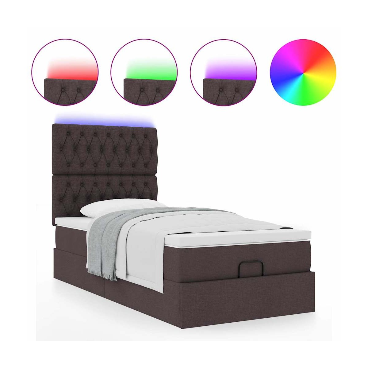 ¡Utilice esta cama otomana con colchón para disfrutar de una noche de sueño reparador! Le ofrece una solución de almacenamiento y una experiencia de sueño cómoda. Material suave y duradero: La tela de poliéster ofrece una combinación de suavidad, transpirabilidad y durabilidad, lo que garantiza que experimentes la máxima comodidad.Colchón de muelles ensacados: Este colchón de muelles ensacados cuenta con muelles ensacados individuales que funcionan de forma independiente para proporcionar un apoyo personalizado reaccionando únicamente a la presión de cada zona. Este diseño evita que se enrolle y reduce la transferencia de movimiento en comparación con los colchones tradicionales de bobina abierta. Cada muelle ensacado sostiene el cuerpo individualmente.amplio espacio de almacenamiento debajo de la cama: gracias al mecanismo de elevación hidráulico, el marco de la cama ofrece un amplio espacio de almacenamiento debajo de la cama, maximizando el espacio sin ocupar área adicional en el piso.Cubrecolchón cómodo: Este cubrecolchón mejora el soporte y la comodidad con su superficie suave y transpirable al tiempo que prolonga la vida útil de su colchón. Su funda extraíble permite un fácil lavado, lo que facilita el mantenimiento.Luces LED para un ambiente agradable: Esta cama cuenta con luces LED que se pueden ajustar fácilmente para crear un espectáculo de luces personalizado. Puedes personalizar los modos, los colores y el brillo para mejorar el ambiente de tu espacio interior. Información útil:El producto tiene un conector USB que necesita una fuente de alimentación USB certificada de 5 V (no incluida).Por razones de higiene, el colchón no puede devolverse si se ha quitado o abierto el embalaje.Únicamente puedes cortar por la parte con el símbolo de las tijeras y únicamente la parte con el USB seguirá funcionando como antes.