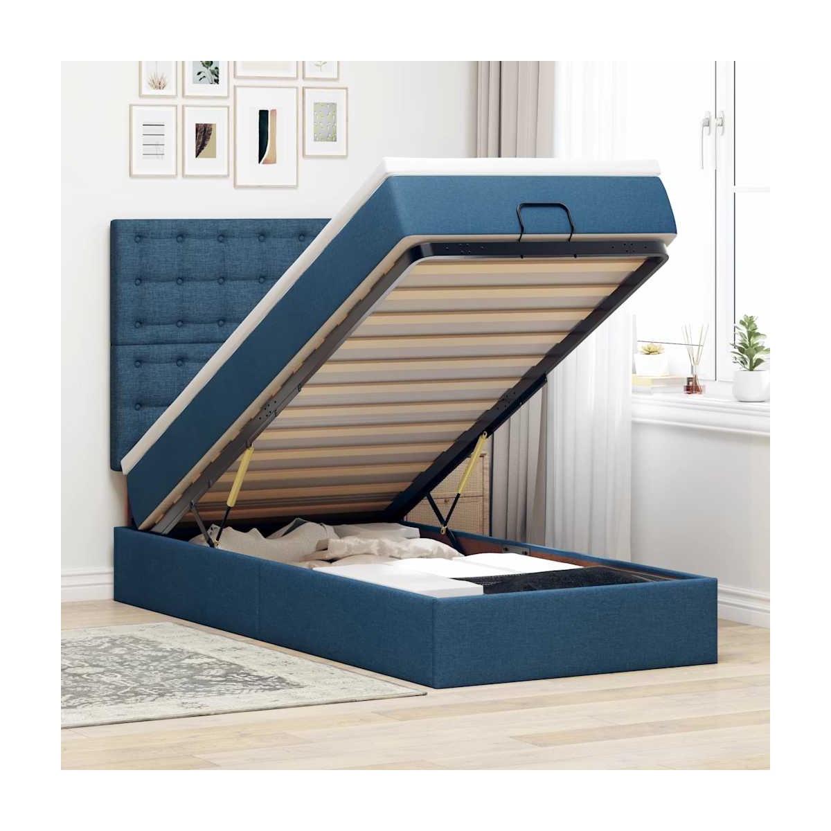 ¡Utilice esta cama otomana con colchón para disfrutar de una noche de sueño reparador! Le ofrece una solución de almacenamiento y una experiencia de sueño cómoda. Material suave y duradero: La tela de poliéster ofrece una combinación de suavidad, transpirabilidad y durabilidad, lo que garantiza que experimentes la máxima comodidad.Colchón de muelles ensacados: Este colchón de muelles ensacados cuenta con muelles ensacados individuales que funcionan de forma independiente para proporcionar un apoyo personalizado reaccionando únicamente a la presión de cada zona. Este diseño evita que se enrolle y reduce la transferencia de movimiento en comparación con los colchones tradicionales de bobina abierta. Cada muelle ensacado sostiene el cuerpo individualmente.amplio espacio de almacenamiento debajo de la cama: gracias al mecanismo de elevación hidráulico, el marco de la cama ofrece un amplio espacio de almacenamiento debajo de la cama, maximizando el espacio sin ocupar área adicional en el piso.Cubrecolchón cómodo: Este cubrecolchón mejora el soporte y la comodidad con su superficie suave y transpirable al tiempo que prolonga la vida útil de su colchón. Su funda extraíble permite un fácil lavado, lo que facilita el mantenimiento. Información útil:Por razones de higiene, el colchón no puede devolverse si se ha quitado o abierto el embalaje.