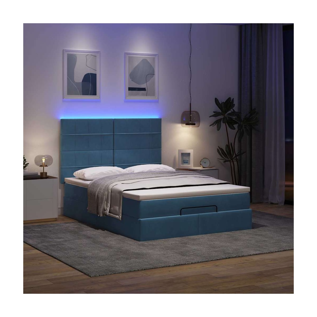 ¡Utilice esta estructura de cama otomana con colchón para disfrutar de una noche de sueño reparador! Le ofrece una solución de almacenamiento y una experiencia de sueño cómoda. Material suave y duradero: La tela de poliéster ofrece una combinación de suavidad, transpirabilidad y durabilidad, lo que garantiza que experimentes la máxima comodidad.Colchón de muelles ensacados: Este colchón de muelles ensacados cuenta con muelles ensacados individuales que funcionan de forma independiente para proporcionar un apoyo personalizado reaccionando únicamente a la presión de cada zona. Este diseño evita que se enrolle y reduce la transferencia de movimiento en comparación con los colchones tradicionales de bobina abierta. Cada muelle ensacado sostiene el cuerpo individualmente.amplio espacio de almacenamiento debajo de la cama: gracias al mecanismo de elevación hidráulico, el marco de la cama ofrece un amplio espacio de almacenamiento debajo de la cama, maximizando el espacio sin ocupar área adicional en el piso.Cubrecolchón cómodo: Este cubrecolchón mejora el soporte y la comodidad con su superficie suave y transpirable al tiempo que prolonga la vida útil de su colchón. Su funda extraíble permite un fácil lavado, lo que facilita el mantenimiento.Luces LED para un ambiente agradable: Esta cama cuenta con luces LED que se pueden ajustar fácilmente para crear un espectáculo de luces personalizado. Puedes personalizar los modos, los colores y el brillo para mejorar el ambiente de tu espacio interior. Información útil:El producto tiene un conector USB que necesita una fuente de alimentación USB certificada de 5 V (no incluida).Por razones de higiene, el colchón no puede devolverse si se ha quitado o abierto el embalaje.Únicamente puedes cortar por la parte con el símbolo de las tijeras y únicamente la parte con el USB seguirá funcionando como antes.