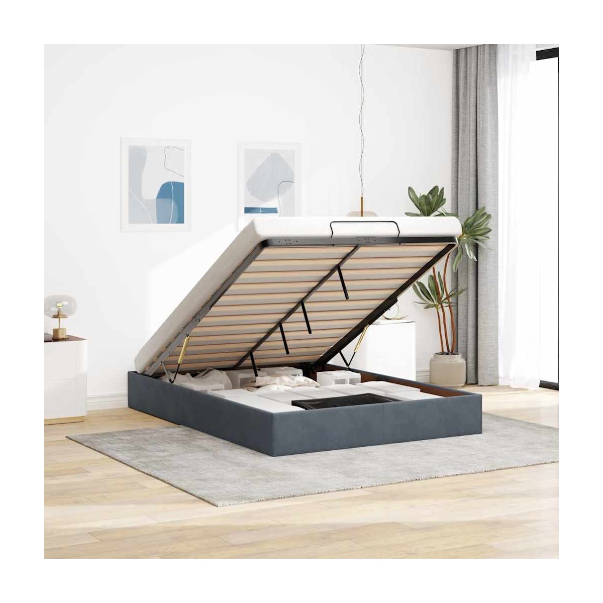 Este marco de cama otomana combina a la perfección la estética moderna con la funcionalidad práctica, ofreciéndole tanto una solución de almacenamiento como una experiencia de sueño cómoda. Material suave y cómodo: La tela de terciopelo ofrece una superficie suave y lisa que proporciona una agradable sensación contra el tacto, aportándole calidez y el máximo confort.Amplio espacio de almacenamiento debajo de la cama: este marco de cama cuenta con un amplio espacio de almacenamiento debajo, lo que maximiza el espacio sin requerir espacio adicional en el piso. Proporciona un amplio espacio para guardar artículos como edredones adicionales, almohadas y ropa de temporada, lo que lo hace ideal para espacios más pequeños o más reducidos.Cómodo mecanismo de elevación: el mecanismo de elevación hidráulico integrado proporciona un fácil acceso a sus pertenencias guardadas debajo de la cama. Con solo tirar de la manija, la base de láminas se levanta suavemente, lo que le permite recuperar sus artículos de manera rápida y sin esfuerzo.No requiere somier: el marco de la cama incluye una base de láminas que proporciona un excelente soporte y transpirabilidad para su colchón, eliminando la necesidad de un somier. Información útil:El colchón no está incluido con la cama. Ofrecemos una variada selección de colchones. Puedes echar un vistazo a nuestra tienda para buscar el colchón correspondiente.