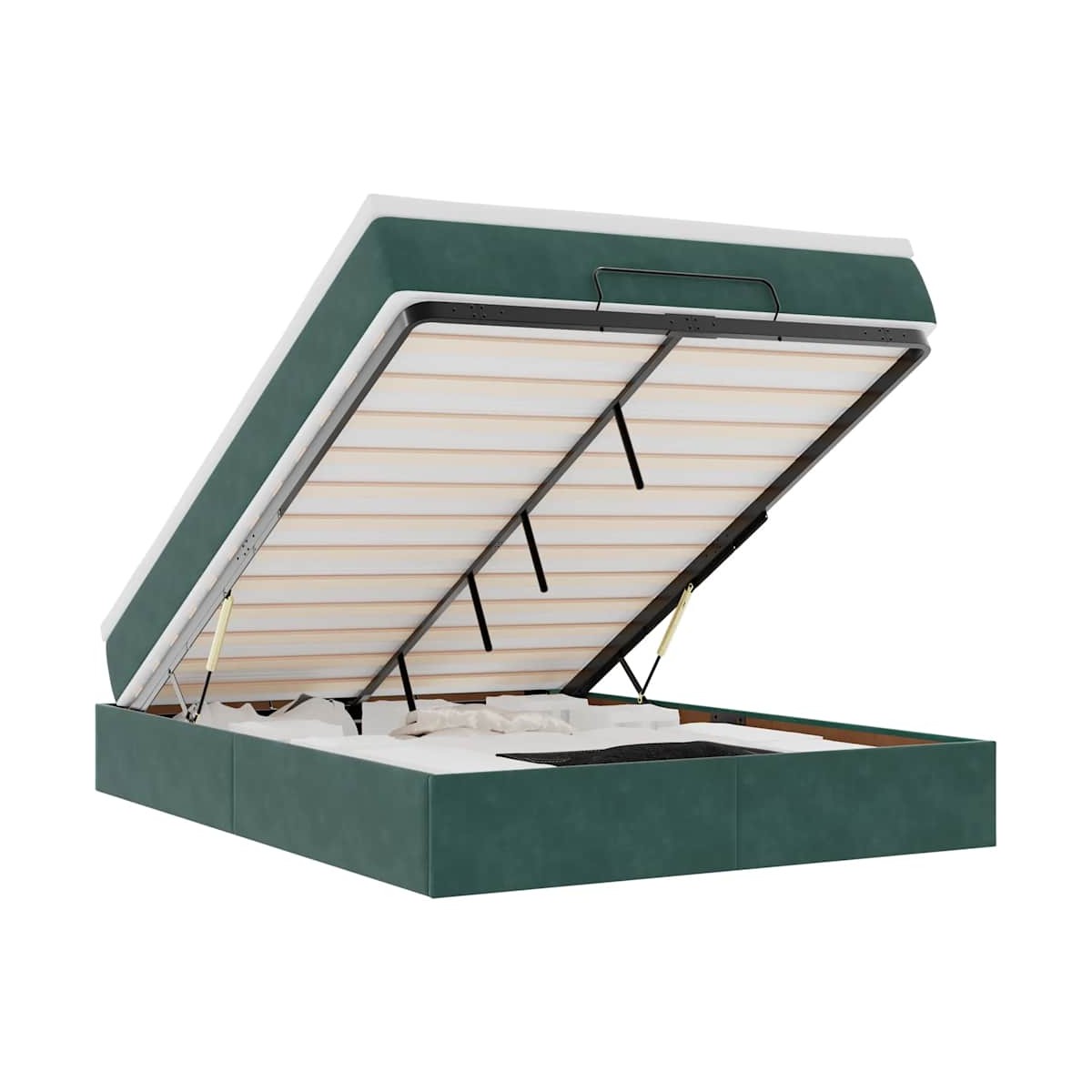 ¡Utilice esta estructura de cama otomana con colchón para disfrutar de una noche de sueño reparador! Le ofrece una solución de almacenamiento y una experiencia de sueño cómoda. Material suave y cómodo: La tela de terciopelo ofrece una superficie suave y lisa que proporciona una agradable sensación contra el tacto, aportándole calidez y el máximo confort.Colchón de muelles ensacados: Este colchón de muelles ensacados cuenta con muelles ensacados individuales que funcionan de forma independiente para proporcionar un apoyo personalizado reaccionando únicamente a la presión de cada zona. Este diseño evita que se enrolle y reduce la transferencia de movimiento en comparación con los colchones tradicionales de bobina abierta. Cada muelle ensacado sostiene el cuerpo individualmente.amplio espacio de almacenamiento debajo de la cama: gracias al mecanismo de elevación hidráulico, el marco de la cama ofrece un amplio espacio de almacenamiento debajo de la cama, maximizando el espacio sin ocupar área adicional en el piso.Cubrecolchón cómodo: Este cubrecolchón mejora el soporte y la comodidad con su superficie suave y transpirable al tiempo que prolonga la vida útil de su colchón. Su funda extraíble permite un fácil lavado, lo que facilita el mantenimiento. Información útil:Por razones de higiene, el colchón no puede devolverse si se ha quitado o abierto el embalaje.