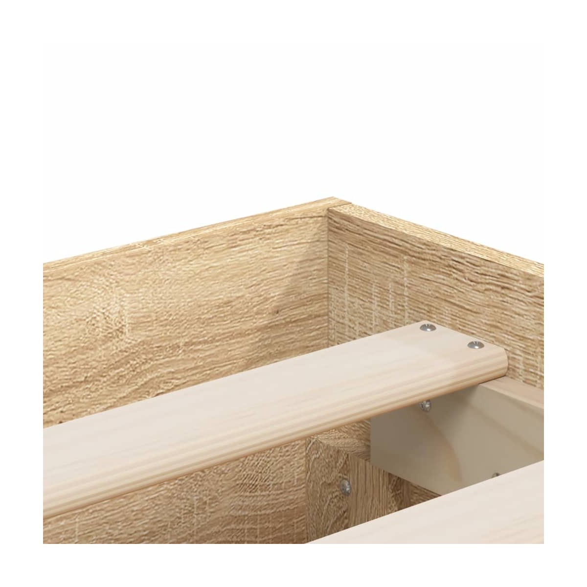 ¡Añade un toque moderno a tu dormitorio con esta estructura de cama con cajones! Es un aporte práctico y decorativo para tu hogar. Material duradero: La estructura de la cama está hecha de madera de ingeniería. La madera de ingeniería tiene una calidad excepcional, con una superficie lisa y también con fuerza, estabilidad y resistencia a la humedad.Listones robustos: Los listones de madera contrachapada proporcionan una buena distribución del peso, lo que garantiza que el colchón se mantenga en tu sitio con cada giro y vuelta del cuerpo mientras duermes.Función de almacenaje: Los cajones de cama incluidos proporcionan amplio espacio de almacenamiento para guardar cosas básicas, y mantienen la habitación limpia y ordenada. Información útil:El colchón no está incluido con la cama. Disponemos de una variada selección de colchones. Puedes echar un vistazo a nuestra tienda para buscar el colchón correspondiente.