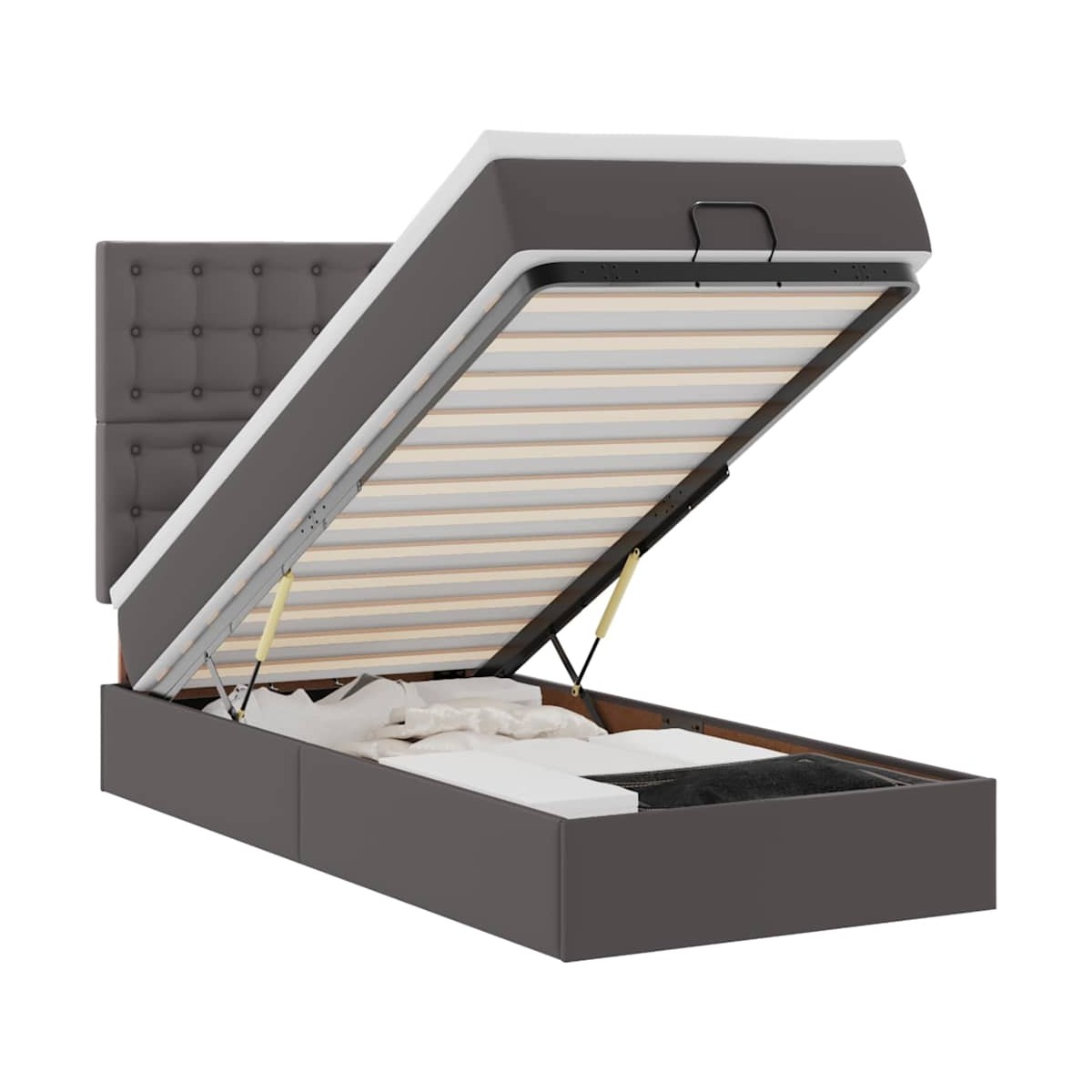 ¡Utilice esta estructura de cama otomana con colchón para disfrutar de una noche de sueño reparador! Le ofrece una solución de almacenamiento y una experiencia de sueño cómoda. Larga duración y fácil mantenimiento: El cuero sintético es un material muy duradero y resistente a las manchas, por lo que es fácil de limpiar con un paño húmedo. Su superficie lisa le da un aspecto elegante que recuerda al cuero auténtico.Colchón de muelles ensacados: Este colchón de muelles ensacados cuenta con muelles ensacados individuales que funcionan de forma independiente para proporcionar un apoyo personalizado reaccionando únicamente a la presión de cada zona. Este diseño evita que se enrolle y reduce la transferencia de movimiento en comparación con los colchones tradicionales de bobina abierta. Cada muelle ensacado sostiene el cuerpo individualmente.amplio espacio de almacenamiento debajo de la cama: gracias al mecanismo de elevación hidráulico, el marco de la cama ofrece un amplio espacio de almacenamiento debajo de la cama, maximizando el espacio sin ocupar área adicional en el piso.Cubrecolchón cómodo: Este cubrecolchón mejora el soporte y la comodidad con su superficie suave y transpirable al tiempo que prolonga la vida útil de su colchón. Su funda extraíble permite un fácil lavado, lo que facilita el mantenimiento.Luces LED para un ambiente agradable: Esta cama cuenta con luces LED que se pueden ajustar fácilmente para crear un espectáculo de luces personalizado. Puedes personalizar los modos, los colores y el brillo para mejorar el ambiente de tu espacio interior. Información útil:El producto tiene un conector USB que necesita una fuente de alimentación USB certificada de 5 V (no incluida).Por razones de higiene, el colchón no puede devolverse si se ha quitado o abierto el embalaje.Únicamente puedes cortar por la parte con el símbolo de las tijeras y únicamente la parte con el USB seguirá funcionando como antes.