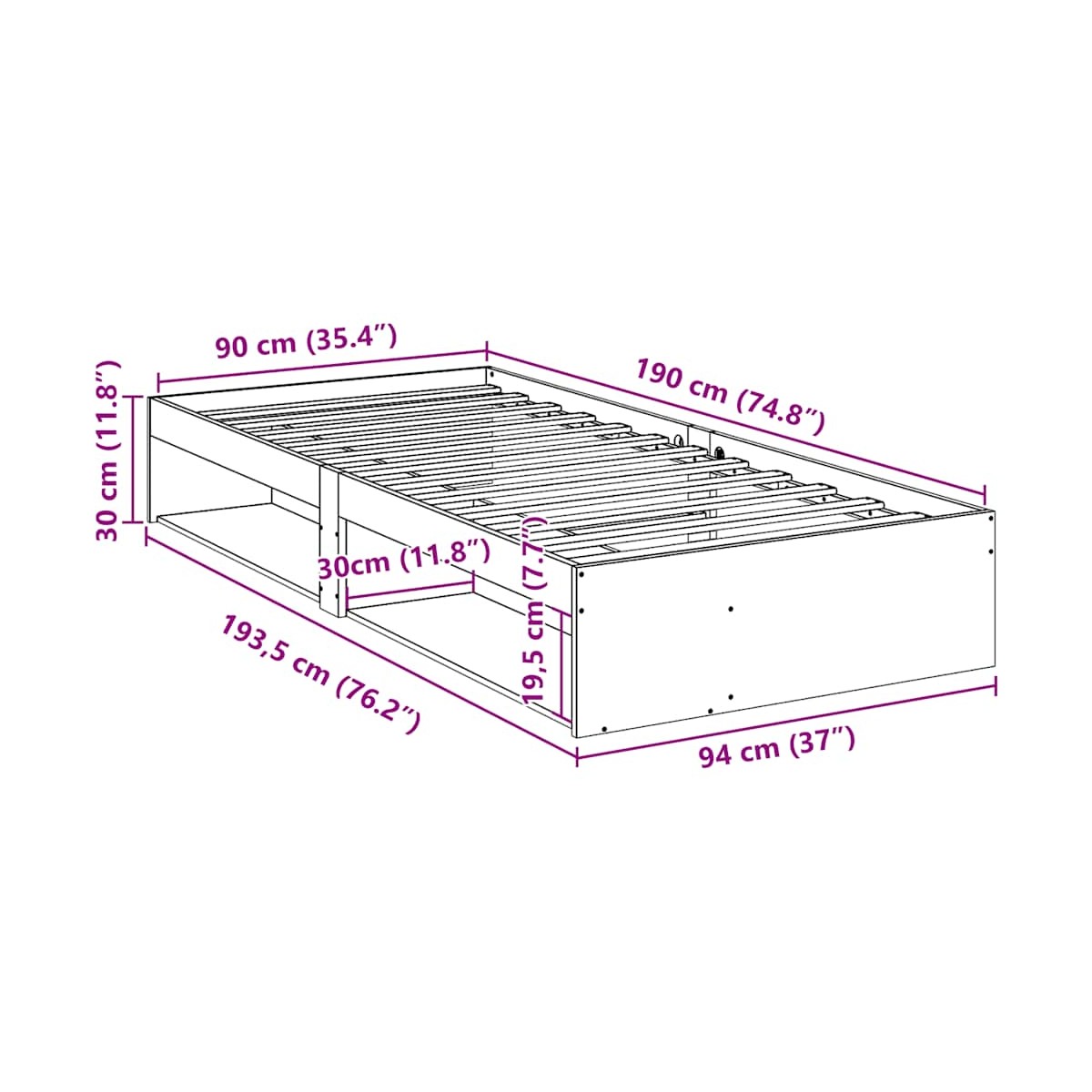 Este elegante diván ofrece un lugar acogedor para descansar y un práctico espacio de almacenamiento, lo que lo convierte en el complemento perfecto para cualquier dormitorio o sala de estar. Estructura estable y duradera: La madera de pino maciza es conocida por su resistencia y durabilidad. Sus vetas rectas y sus característicos nudos contribuyen a su encanto rústico.No requiere somier: el marco de la cama incluye una base de láminas que proporciona un excelente soporte y transpirabilidad para su colchón, eliminando la necesidad de un somier.Sofá cama multiusos: Este sofá cama de madera se puede utilizar como sofá durante el día o como cama por la noche. Es una solución rápida para alojar invitados por la noche sin ocupar mucho espacio.Amplio espacio de almacenamiento debajo de la cama: este marco de cama cuenta con un amplio espacio de almacenamiento debajo, lo que maximiza el espacio sin requerir espacio adicional en el piso. Proporciona un amplio espacio para guardar artículos como edredones adicionales, almohadas y ropa de temporada, lo que lo hace ideal para espacios más pequeños o más reducidos. Información útil:El colchón no está incluido con la cama. Ofrecemos una variada selección de colchones. Puedes echar un vistazo a nuestra tienda para buscar el colchón correspondiente.