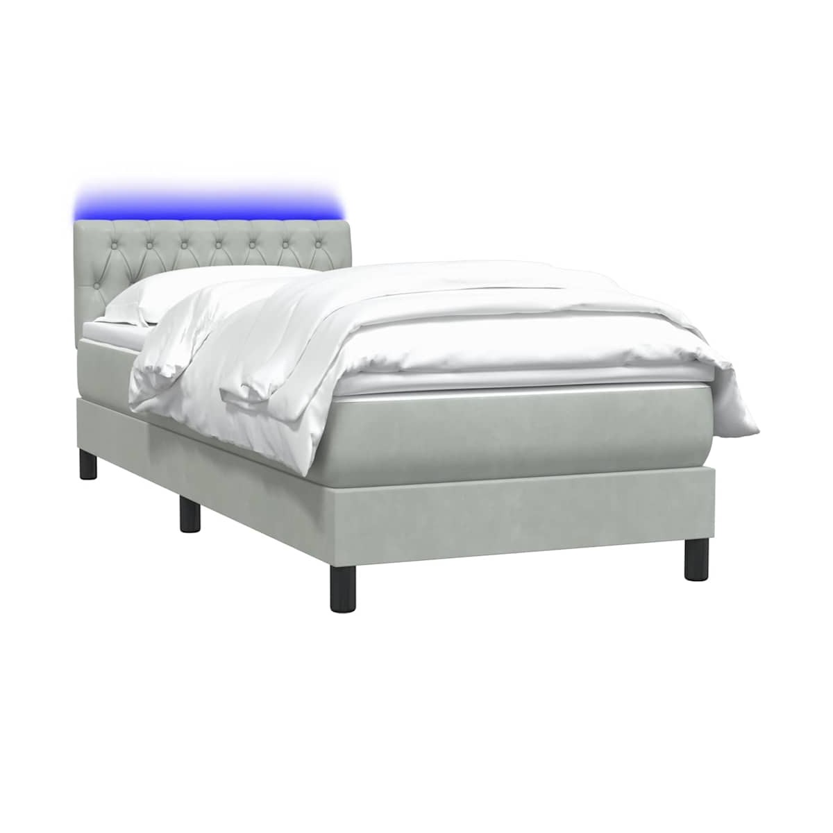 Utiliza esta cama de muelles para disfrutar de un sueño reparador. Te ofrece la máxima relajación y un sueño placentero. Material suave y cómodo: La tela de terciopelo ofrece una superficie suave y lisa que proporciona una agradable sensación contra el tacto, aportándole calidez y el máximo confort.Colchón de muelles ensacados: Este colchón de muelles ensacados cuenta con muelles ensacados individuales que funcionan de forma independiente para proporcionar un apoyo personalizado reaccionando únicamente a la presión de cada zona. Este diseño evita que se enrolle y reduce la transferencia de movimiento en comparación con los colchones tradicionales de bobina abierta. Cada muelle ensacado sostiene el cuerpo individualmente.Cubrecolchón cómodo: Este cubrecolchón mejora el soporte y la comodidad con su superficie suave y transpirable al tiempo que prolonga la vida útil de su colchón. Su funda extraíble permite un fácil lavado, lo que facilita el mantenimiento.Cabecero práctico: El cabecero de la cama es ajustable en altura según tus preferencias. El cabecero de la cama te proporciona un excelente apoyo para la espalda mientras estás sentado en la cama para leer o ver la televisión.Luces LED para un ambiente agradable: Esta cama cuenta con luces LED que se pueden ajustar fácilmente para crear un espectáculo de luces personalizado. Puedes personalizar los modos, los colores y el brillo para mejorar el ambiente de tu espacio interior. Información útil:El producto tiene un conector USB que necesita una fuente de alimentación USB certificada de 5 V (no incluida).Por razones de higiene, el colchón no puede devolverse si se ha quitado o abierto el embalaje.Únicamente puedes cortar por la parte con el símbolo de las tijeras y únicamente la parte con el USB seguirá funcionando como antes.