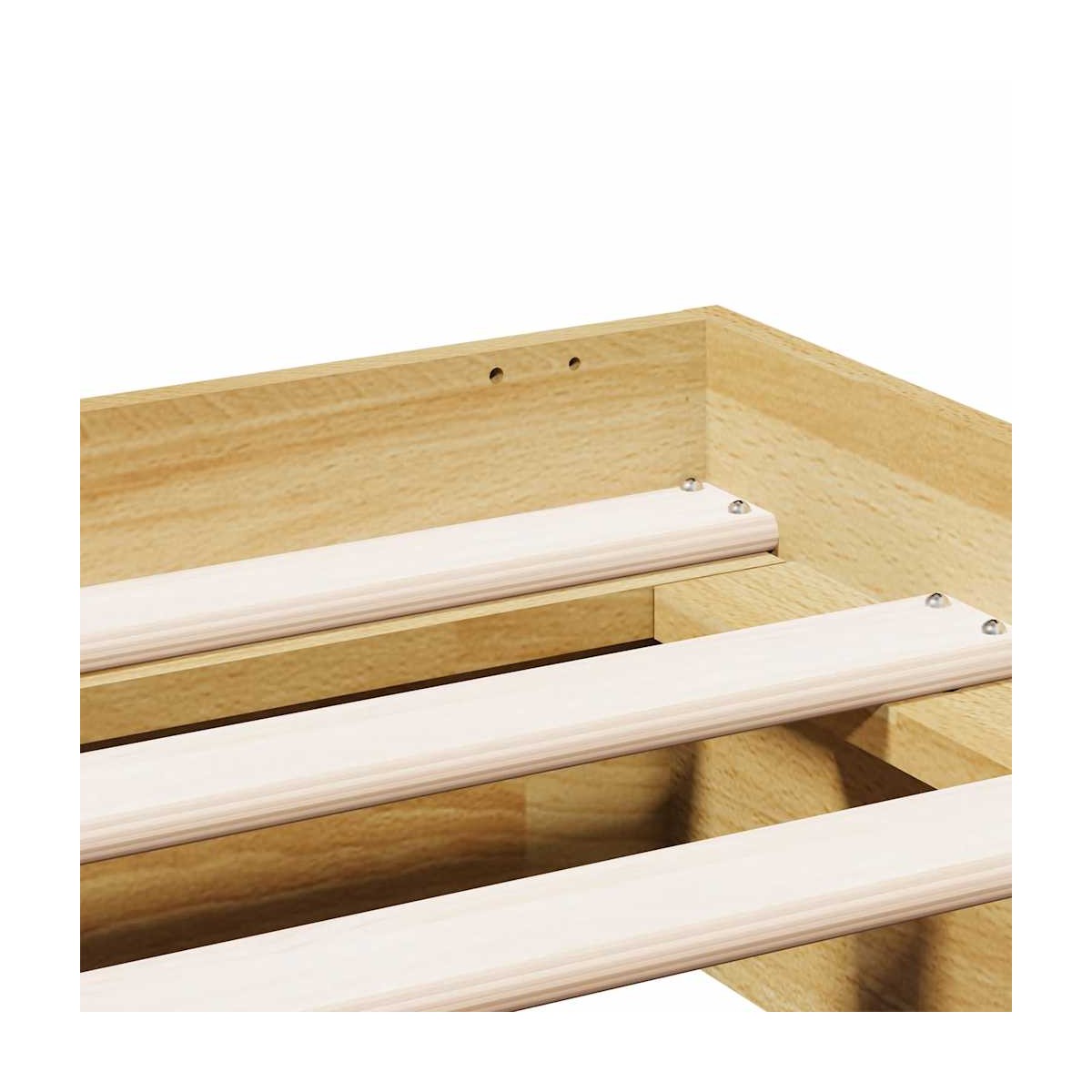 Consigue un sueño más reparador con esta estructura de cama. Es un aporte acogedor para cualquier dormitorio. Robusto y estable: La madera maciza de roble es conocida por su resistencia, durabilidad y bello veteado, lo que la hace ideal para muebles duraderos. Su resistencia natural a insectos y hongos garantiza que los muebles de roble sigan siendo atractivos y funcionales durante años.Somier de láminas para un soporte óptimo: La estructura de cama está equipada con un somier de láminas para el apoyo y la transpirabilidad del colchón.Cama de piso bajo: Este marco de cama está diseñado específicamente para estar cerca del suelo, lo que hace que sea más seguro y accesible para que tu hijo se mueva y se meta y salga de la cama de forma independiente.Compacto y ahorra espacio: con su diseño compacto, el marco de la cama es ideal para espacios reducidos o techos bajos, lo que le permite maximizar el área disponible sin sacrificar el estilo ni la comodidad. Información útil:El colchón no está incluido con la cama. Ofrecemos una variada selección de colchones. Puedes echar un vistazo a nuestra tienda para buscar el colchón correspondiente.