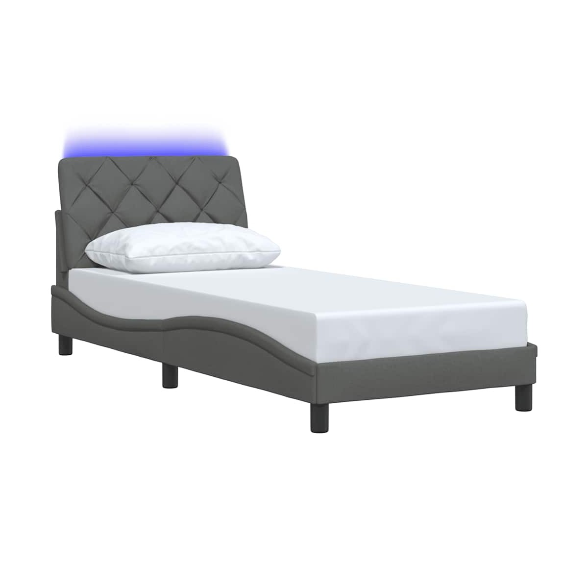 ¡Consigue tener un sueño reparador con esta estructura de cama con luces LED! Es un aporte acogedor para cualquier dormitorio. Material suave y duradero: La tela de poliéster ofrece una combinación de suavidad, transpirabilidad y durabilidad, lo que garantiza que experimentes la máxima comodidad.Listones para un soporte óptimo: El somier se completa con listones para ofrecer un soporte esencial y transpirabilidad a tu colchón.Cabecero versátil: Esta estructura de cama viene con un cabecero que proporciona un excelente soporte para la espalda cuando te sientas en la cama para leer o ver la televisión, a la vez que sirve como elemento decorativo.Luces LED para un ambiente agradable: Esta cama cuenta con luces LED que se pueden ajustar fácilmente para crear un espectáculo de luces personalizado. Puedes personalizar los modos, los colores y el brillo para mejorar el ambiente de tu espacio interior.Diseño lateral ondulado: El look ondulado de la estructura de la cama es elegante y sofisticado, agregando un toque moderno y elegante a tu decoración, convirtiéndolo en el foco de atención de tu dormitorio. Información útil:El colchón no está incluido con la cama. Ofrecemos una variada selección de colchones. Puedes echar un vistazo a nuestra tienda para buscar el colchón correspondiente.El producto tiene un conector USB que necesita una fuente de alimentación USB certificada de 5 V (no incluida).