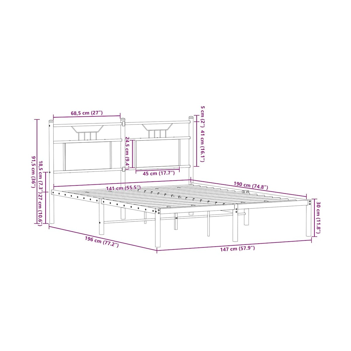 Consigue un sueño más reparador con esta estructura de cama. Es un aporte acogedor para cualquier dormitorio. Estructura estable y duradera: El acero es fuerte, estable y duradero, lo que lo convierte en la opción ideal para una amplia gama de aplicaciones, desde la fabricación de muebles hasta la construcción.Cabecero versátil: Este somier viene con un cabecero que proporciona un excelente soporte para la espalda cuando te sientas en la cama para leer o ver la televisión, a la vez que sirve como elemento decorativo.Espacio de almacenamiento adicional: para mayor comodidad, la base de la cama tiene un espacio adicional debajo para mantener sus cajas de almacenamiento fuera de la vista.Somier de láminas para un soporte óptimo: el marco de cama de metal está equipado con un somier de láminas para brindar soporte y transpirabilidad a su colchón. Información útil:El colchón no está incluido con la cama. Ofrecemos una variada selección de colchones. Puedes echar un vistazo a nuestra tienda para buscar el colchón correspondiente.