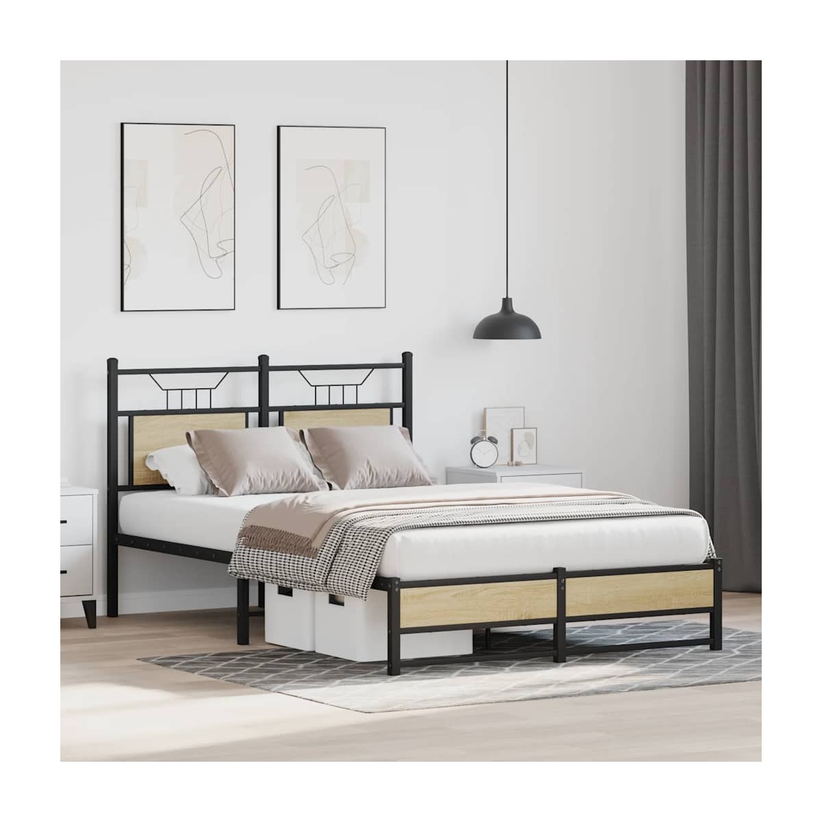 Consigue un sueño más reparador con esta estructura de cama. Es un aporte acogedor para cualquier dormitorio. Estructura estable y duradera: El acero es fuerte, estable y duradero, lo que lo convierte en la opción ideal para una amplia gama de aplicaciones, desde la fabricación de muebles hasta la construcción.Cabecero versátil: Este somier viene con un cabecero que proporciona un excelente soporte para la espalda cuando te sientas en la cama para leer o ver la televisión, a la vez que sirve como elemento decorativo.Espacio de almacenamiento adicional: para mayor comodidad, la base de la cama tiene un espacio adicional debajo para mantener sus cajas de almacenamiento fuera de la vista.Somier de láminas para un soporte óptimo: el marco de cama de metal está equipado con un somier de láminas para brindar soporte y transpirabilidad a su colchón. Información útil:El colchón no está incluido con la cama. Ofrecemos una variada selección de colchones. Puedes echar un vistazo a nuestra tienda para buscar el colchón correspondiente.