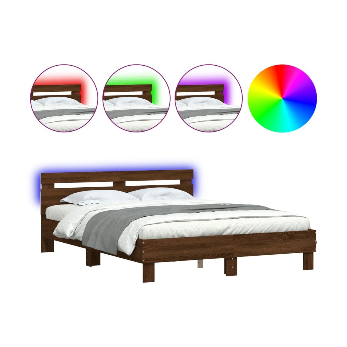 ¡Consigue tener un sueño reparador con esta estructura de cama con luz LED! Es un aporte acogedor para cualquier dormitorio. Material duradero: La madera de ingeniería tiene una calidad excepcional, con una superficie lisa y también cuenta con fuerza, estabilidad y resistencia a la humedad.Luces LED RGB: La cama está equipada con luces LED RGB. Con varios menús personalizables, puedes cambiar fácilmente el color de las luces e incluso configurarlas para que se ajusten automáticamente. Estas luces LED no sólo realzan el look moderno de la base de la cama, sino que también aumentan su atractivo.Excelente soporte: El cabecero de la cama brinda un excelente soporte para la espalda mientras estás sentado en la cama para leer o ver la televisión.Listones robustos: Los listones de madera contrachapada proporcionan una buena distribución del peso, lo que garantiza que el colchón se mantenga en tu sitio con cada giro y vuelta del cuerpo mientras duermes. Información útil:El colchón no está incluido con la cama. Disponemos de una variada selección de colchones. Puedes echar un vistazo a nuestra tienda para buscar el colchón correspondiente.El producto tiene un conector USB que necesita una fuente de alimentación USB certificada de 5 V (no incluida).