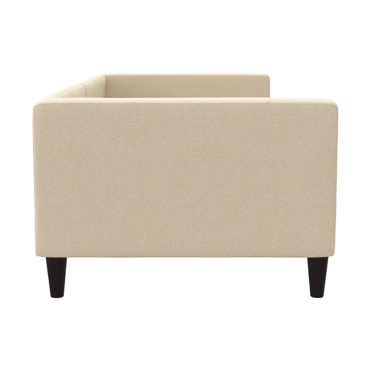 Este sofá cama 2 en 1, que sirve tanto de sofá como de cama, es un complemento práctico y llamativo para el salón o el dormitorio. Sofá cama versátil: El sofá cama puede utilizarse como sofá durante el día o como cama por la noche, para tener una solución rápida para alojar a invitados que pasen la noche.Experiencia confortable: El sofá cama está hecho de tela. La tela posee un aspecto sencillo y limpio, además de ser transpirable y duradera. Asimismo, el respaldo y los reposabrazos de la cama de invitados están acolchados con espuma para mejorar la comodidad.Estructura robusta y estable: La estructura principal del sofá cama está hecha de metal y madera maciza, por lo que es muy resistente y duradero. Estos listones de madera contrachapada permiten una mejor circulación del aire con el fin de mantener el colchón fresco durante más tiempo, además de mejorar la capacidad de peso y garantizar la estabilidad.Diseño moderno: ¡El sofá cama tiene un diseño moderno con líneas nítidas, un aspecto minimalista, así como luz natural, y añadirá un estilo moderno a la casa! Información útil:El colchón no está incluido con la cama. Disponemos de una variada selección de colchones. Puedes echar un vistazo a nuestra tienda para buscar el colchón correspondiente.