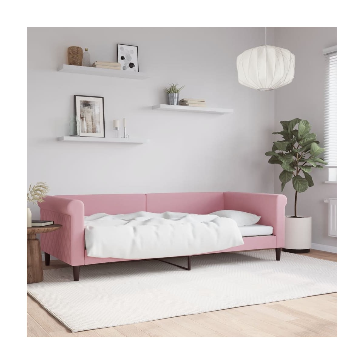 Este sofá cama 2 en 1, que sirve tanto de sofá como de cama, es un complemento práctico y llamativo para el salón o el dormitorio. Sofá cama versátil: El sofá cama puede utilizarse como sofá durante el día o como cama por la noche, para tener una solución rápida para alojar a invitados que pasen la noche.Experiencia confortable: El sofá cama está hecho de terciopelo, un tejido suave y cómodo que resulta agradable al tacto. Además, el respaldo y los reposabrazos de la cama de invitados están acolchados con espuma para mejorar la comodidad.Estructura robusta y estable: La estructura principal del sofá cama está hecha de metal y madera maciza, por lo que es muy resistente y duradero. Estos listones de madera contrachapada permiten una mejor circulación del aire con el fin de mantener el colchón fresco durante más tiempo, además de mejorar la capacidad de peso y garantizar la estabilidad.Diseño moderno: ¡El sofá cama tiene un diseño moderno con líneas nítidas, un aspecto minimalista, así como luz natural, y añadirá un estilo moderno a la casa! Información útil:El colchón no está incluido con la cama. Disponemos de una variada selección de colchones. Puedes echar un vistazo a nuestra tienda para buscar el colchón correspondiente.
