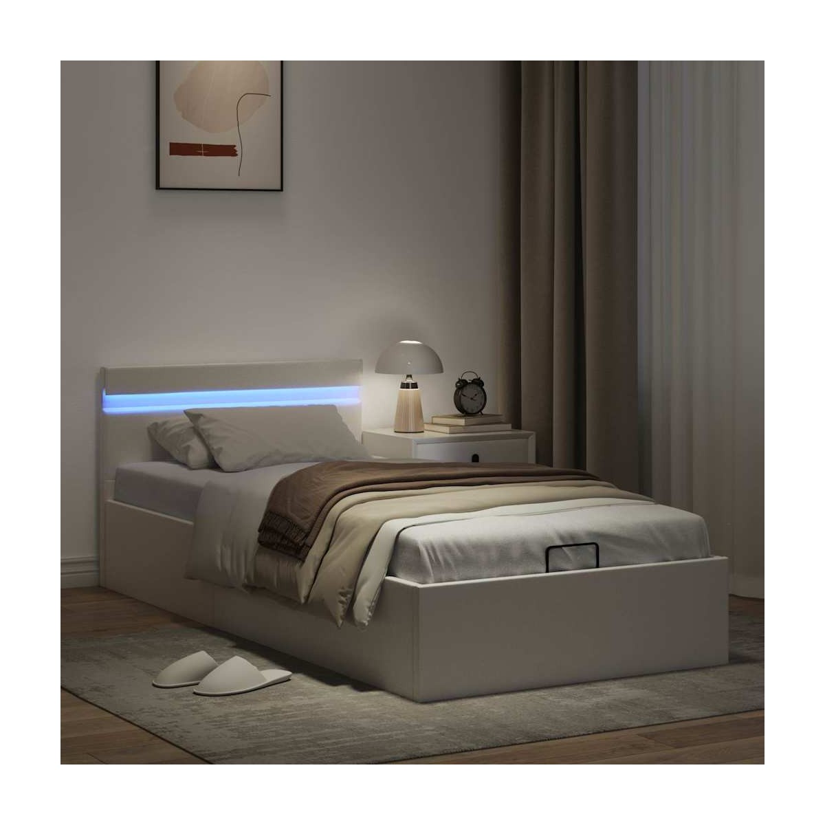 ¡Añade al instante un impresionante toque moderno a tu dormitorio con nuestra estructura de cama hidráulica de cuero sintético! Esta cama individual se caracteriza por un diseño sencillo y elegante así como por una estructura maciza, ya que está hecha de MDF resistente y robusto. Esta cama tapizada convierte el espacio no utilizado debajo del colchón en espacio de almacenamiento, con un amplio espacio para guardar ropa, sábanas, mantas, etc. El mecanismo hidráulico de elevación de gas hace que levantar el colchón sea muy fácil. El somier permanecerá en posición vertical una vez que lo hayas levantado para que tengas ambas manos libres para retirar o guardar objetos debajo. La estructura de acero con recubrimiento en polvo y los listones de madera contrachapada aumentan la robustez y durabilidad de la cama. Tapizada en cuero sintético brillante, esta cama con almacenaje se ve atractiva y es fácil de mantener. Esta cama es adecuada para un colchón de 100 x 200 cm. Esta cama cuenta con luces LED que se pueden ajustar fácilmente para crear un espectáculo de luces personalizado. Puedes personalizar los modos, los colores y el brillo para mejorar el ambiente de tu espacio interior. El producto se monta fácilmente. Ten en cuenta que la entrega solo incluye la estructura de cama; el colchón no está incluido. Puedes buscar uno apropiado para ella en nuestra tienda. Nota: El producto tiene un conector USB, pero la fuente de alimentación USB de 5V certificada no está incluida.