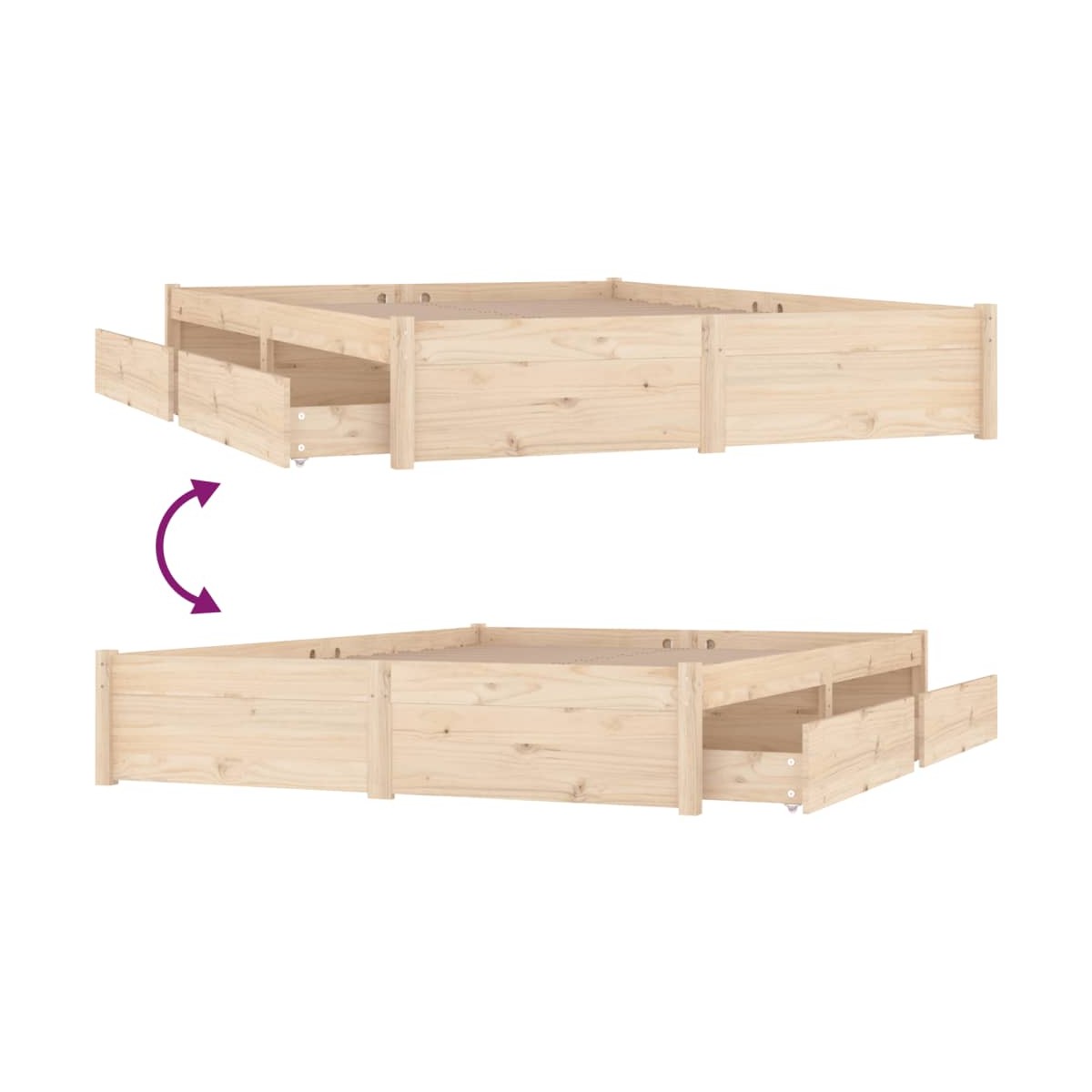 Con un diseño sencillo pero atemporal, esta estructura de cama está pensada para ser un aporte verdaderamente práctico y decorativo para tu dormitorio. Madera de pino maciza: La madera de pino maciza es un bonito material natural. La madera de pino tiene vetas rectas, y los nudos dan al material su distintivo aspecto rústico.Listones robustos: Los listones de madera contrachapada proporcionan una buena distribución del peso, lo que garantiza que el colchón se mantenga en tu sitio con cada giro y vuelta del cuerpo mientras duermes.Función de almacenaje: Los cajones de cama incluidos proporcionan amplio espacio de almacenamiento para guardar cosas básicas, y mantienen la habitación limpia y ordenada. Nota:La entrega incluye únicamente una estructura de cama. Los colchones no están incluidos. Puedes echar un vistazo a nuestra tienda para buscar el correspondiente colchón.Esta estructura de cama es adecuada para un colchón de 140 x 200 cm