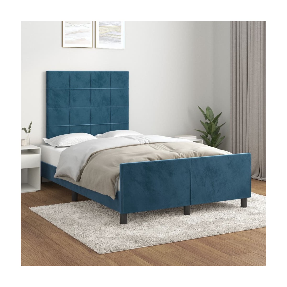 ¡Consigue un sueño más reparador con esta estructura de cama con cabecero! Es un aporte acogedor para cualquier dormitorio. Terciopelo suave: El terciopelo es una tela suave y lujosa, reconocida por su denso pelo de fibras cortadas de forma uniforme que tienen una suave pelusa. La tela de terciopelo posee un característico y suave tacto, lo que hace que sea cómoda al tacto.Altura regulable: El cabecero de la cama es ajustable en altura según tus preferencias.Patas de apoyo: La cama se apoya en patas robustas, que garantizan su estabilidad, seguridad y firmeza.Listones robustos: Los listones de madera contrachapada proporcionan una buena distribución del peso, lo que garantiza que el colchón se mantenga en tu sitio con cada giro y vuelta del cuerpo mientras duermes.Excelente apoyo: El cabecero de la cama te proporciona un excelente apoyo para la espalda mientras estás sentado en la cama para leer o ver la televisión. Nota:La entrega incluye solo una estructura de cama. El colchón no está incluido. Puedes echar un vistazo en nuestra tienda para buscar colchones a juego.Cada producto viene con un manual de montaje en la caja para facilitar el montaje.
