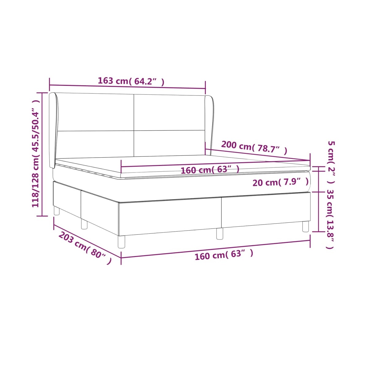 - Dimensiones: 203 x 163 x 118/128 cm (largo x ancho x alto)