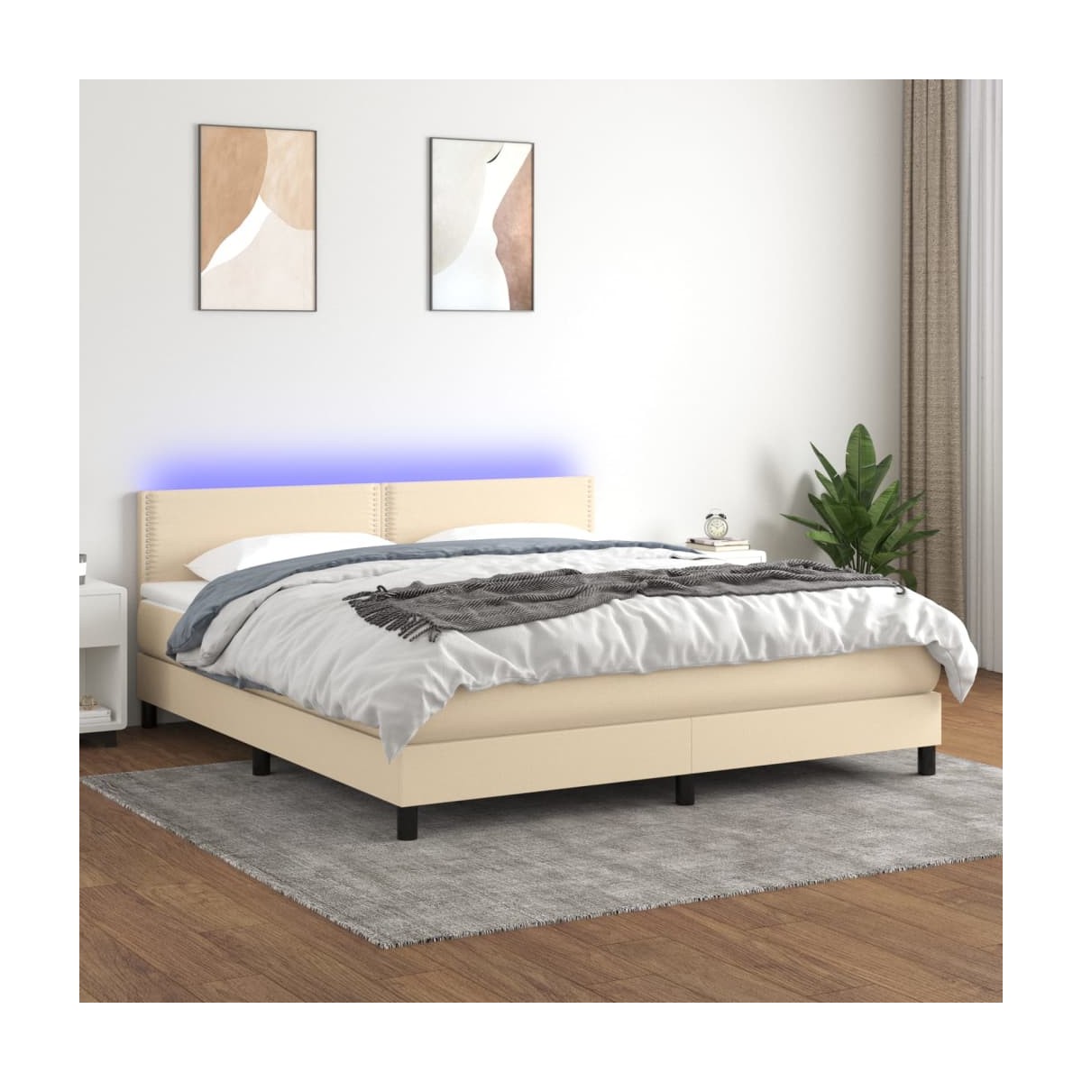 Utiliza esta cama tipo box spring con colchón y luces LED para disfrutar de un sueño reparador. Será el centro de atención del dormitorio. Material de primera calidad: La tela posee un aspecto sencillo y limpio, y es transpirable y duradera.Cabecero práctico: El cabecero de la cama es ajustable en altura según tus preferencias. El cabecero de la cama te proporciona un excelente apoyo para la espalda mientras estás sentado en la cama para leer o ver la televisión.Tira de LED de colores: Alegra la oscuridad con luces LED de colores.Colchón de muelles ensacados: El muelle ensacado individual incorporado es conocido por su altísima calidad, al tiempo que garantiza un alto nivel de durabilidad y adaptabilidad. Puede absorber eficazmente el ruido y los golpes causados por los lanzamientos y los giros.Protector de colchón respetuoso con la piel: El protector de colchón tiene una funda de tejido resistente y respetuoso con la piel, que lo hace suave y confortable. Nota:Por razones de higiene, el colchón no puede devolverse si se ha quitado o abierto el embalaje.Cada producto viene con un manual de montaje en la caja para facilitar el montaje.Únicamente puedes cortar por la parte con el símbolo de las tijeras y únicamente la parte con el USB seguirá funcionando como antes.El producto tiene un conector USB, pero no se incluye la fuente de alimentación USB de 5 V certificada.