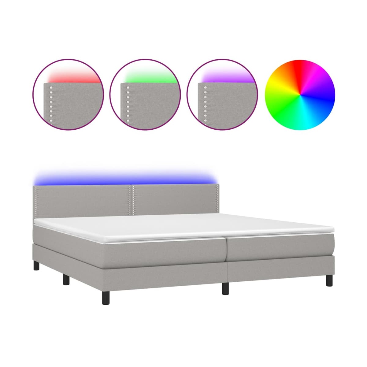 Utiliza esta cama tipo box spring con colchón y luces LED para disfrutar de un sueño reparador. Será el centro de atención del dormitorio. Material de primera calidad: La tela posee un aspecto sencillo y limpio, y es transpirable y duradera.Cabecero práctico: El cabecero de la cama es ajustable en altura según tus preferencias. El cabecero de la cama te proporciona un excelente apoyo para la espalda mientras estás sentado en la cama para leer o ver la televisión.Tira de LED de colores: Alegra la oscuridad con luces LED de colores.Colchón de muelles ensacados: El muelle ensacado individual incorporado es conocido por su altísima calidad, al tiempo que garantiza un alto nivel de durabilidad y adaptabilidad. Puede absorber eficazmente el ruido y los golpes causados por los lanzamientos y los giros.Protector de colchón respetuoso con la piel: El protector de colchón tiene una funda de tejido resistente y respetuoso con la piel, que lo hace suave y confortable. Nota:Por razones de higiene, el colchón no puede devolverse si se ha quitado o abierto el embalaje.Cada producto viene con un manual de montaje en la caja para facilitar el montaje.Únicamente puedes cortar por la parte con el símbolo de las tijeras y únicamente la parte con el USB seguirá funcionando como antes.El producto tiene un conector USB, pero no se incluye la fuente de alimentación USB de 5 V certificada.