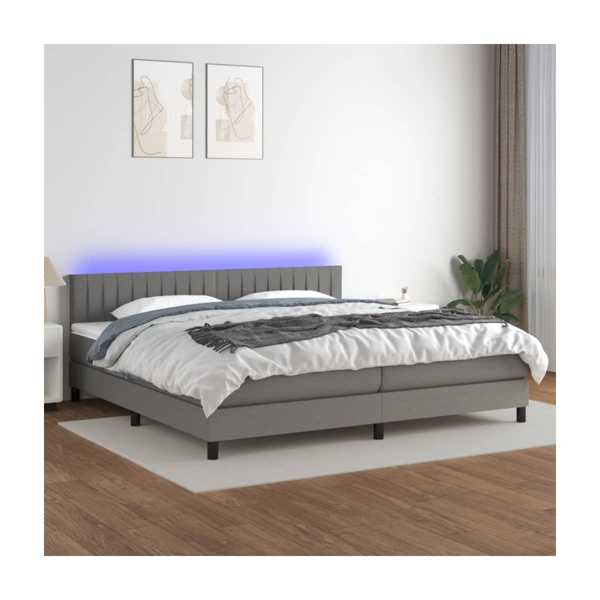 Utiliza esta cama tipo box spring con colchón y luces LED para disfrutar de un sueño reparador. Será el centro de atención del dormitorio. Material de primera calidad: La tela posee un aspecto sencillo y limpio, y es transpirable y duradera.Cabecero práctico: El cabecero de la cama es ajustable en altura según tus preferencias. El cabecero de la cama te proporciona un excelente apoyo para la espalda mientras estás sentado en la cama para leer o ver la televisión.Tira de LED de colores: Alegra la oscuridad con luces LED de colores.Colchón de muelles ensacados: El muelle ensacado individual incorporado es conocido por su altísima calidad, al tiempo que garantiza un alto nivel de durabilidad y adaptabilidad. Puede absorber eficazmente el ruido y los golpes causados por los lanzamientos y los giros.Protector de colchón respetuoso con la piel: El protector de colchón tiene una funda de tejido resistente y respetuoso con la piel, que lo hace suave y confortable. Nota: La lona impermeable no está incluidaPor razones de higiene, el colchón no puede devolverse si se ha quitado o abierto el embalaje.Cada producto viene con un manual de montaje en la caja para facilitar el montaje.Únicamente puedes cortar por la parte con el símbolo de las tijeras y únicamente la parte con el USB seguirá funcionando como antes.El producto tiene un conector USB, pero no se incluye la fuente de alimentación USB de 5 V certificada.