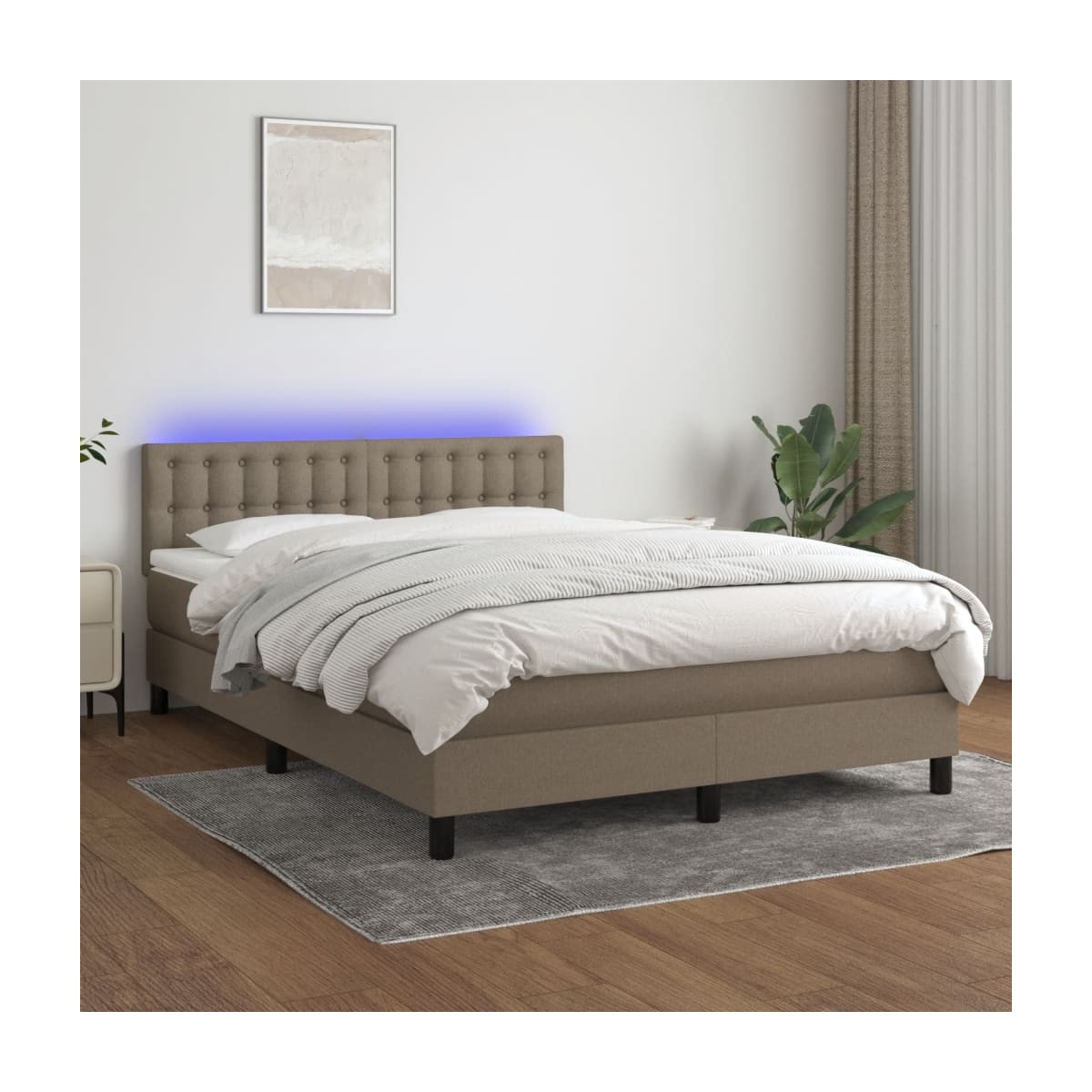 Utiliza esta cama tipo box spring con colchón y luces LED para disfrutar de un sueño reparador. Será el centro de atención del dormitorio. Material de primera calidad: La tela posee un aspecto sencillo y limpio, y es transpirable y duradera.Cabecero práctico: El cabecero de la cama es ajustable en altura según tus preferencias. El cabecero de la cama te proporciona un excelente apoyo para la espalda mientras estás sentado en la cama para leer o ver la televisión.Tira de LED de colores: Alegra la oscuridad con luces LED de colores.Colchón de muelles ensacados: El muelle ensacado individual incorporado es conocido por su altísima calidad, al tiempo que garantiza un alto nivel de durabilidad y adaptabilidad. Puede absorber eficazmente el ruido y los golpes causados por los lanzamientos y los giros.Protector de colchón respetuoso con la piel: El protector de colchón tiene una funda de tejido resistente y respetuoso con la piel, que lo hace suave y confortable. Nota:Por razones de higiene, el colchón no puede devolverse si se ha quitado o abierto el embalaje.Cada producto viene con un manual de montaje en la caja para facilitar el montaje.Únicamente puedes cortar por la parte con el símbolo de las tijeras y únicamente la parte con el USB seguirá funcionando como antes.El producto tiene un conector USB, pero no se incluye la fuente de alimentación USB de 5 V certificada.