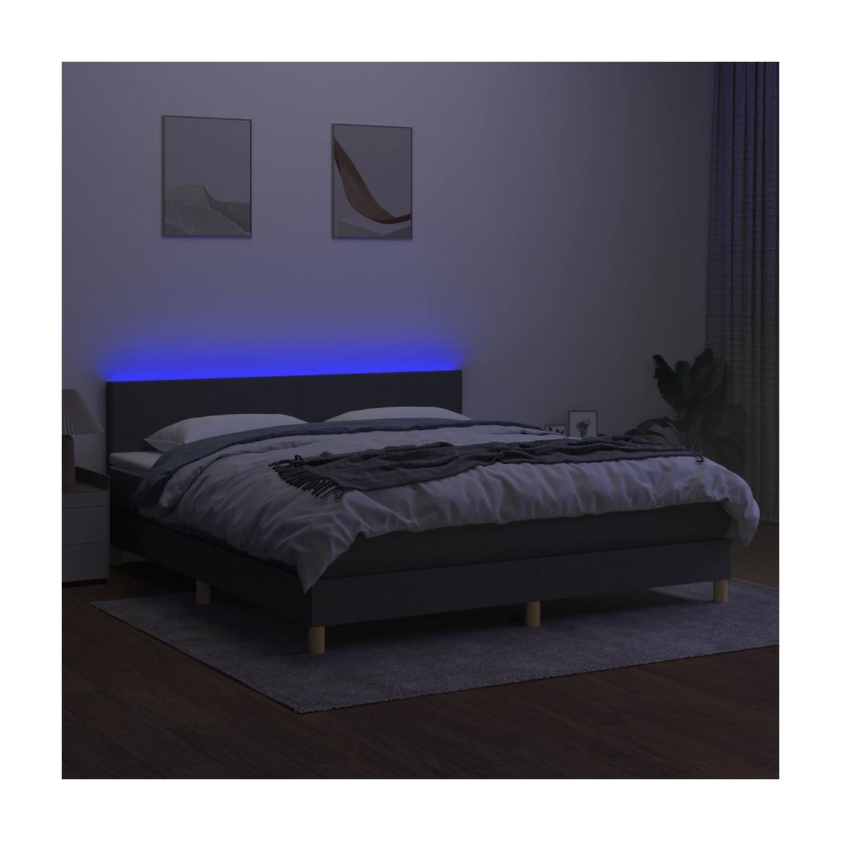 Utiliza esta cama box spring con colchón y LED para disfrutar de un sueño reparador. Es el centro de atención de tu dormitorio. Material de primera calidad: La tela posee un aspecto sencillo y limpio, y es transpirable y duradera.Cabecero práctico: El cabecero de la cama es ajustable en altura según tus preferencias. El cabecero de la cama te proporciona un excelente apoyo para la espalda mientras estás sentado en la cama para leer o ver la televisión.Tira de LED de colores: Alegra la oscuridad con luces LED de colores.Colchón de muelles ensacados: El muelle ensacado individual incorporado es conocido por su altísima calidad, al tiempo que garantiza un alto nivel de durabilidad y adaptabilidad. Puede absorber eficazmente el ruido y los golpes causados por los lanzamientos y los giros.Protector de colchón respetuoso con la piel: El protector de colchón tiene una funda de tejido resistente y respetuoso con la piel, que lo hace suave y confortable. Nota:Por razones de higiene, el colchón no puede devolverse si se ha quitado o abierto el embalaje.Cada producto viene con un manual de montaje en la caja para facilitar el montaje.Únicamente puedes cortar por la parte con el símbolo de las tijeras y únicamente la parte con el USB seguirá funcionando como antes.El producto tiene un conector USB, pero no se incluye la fuente de alimentación USB de 5 V certificada.