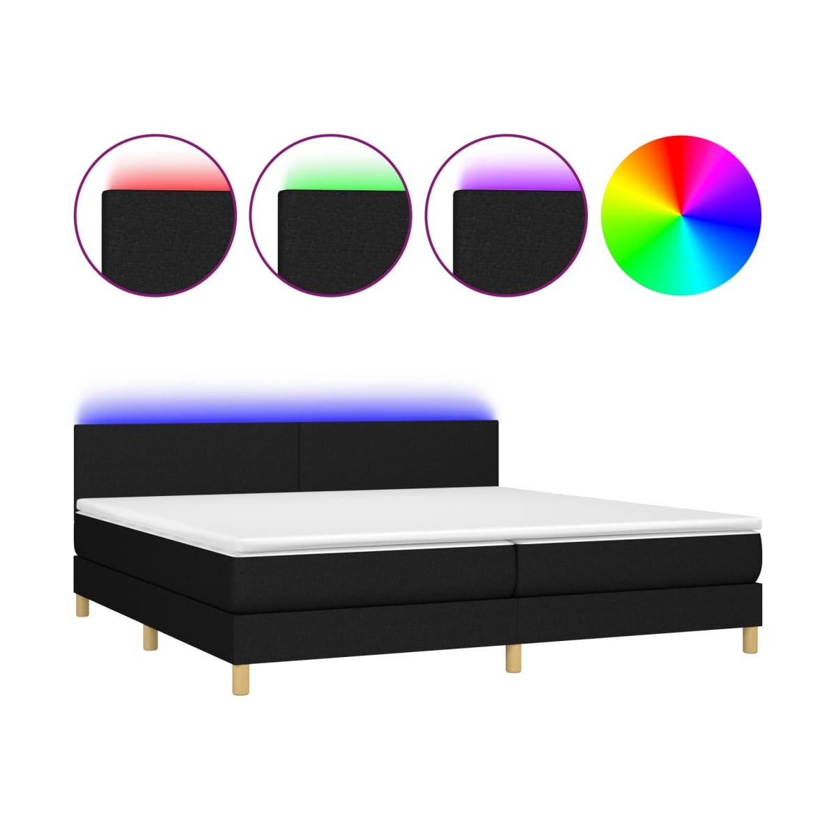 Utiliza esta cama box spring con colchón y LED para disfrutar de un sueño reparador. Es el centro de atención de tu dormitorio. Material de primera calidad: La tela posee un aspecto sencillo y limpio, y es transpirable y duradera.Cabecero práctico: El cabecero de la cama es ajustable en altura según tus preferencias. El cabecero de la cama te proporciona un excelente apoyo para la espalda mientras estás sentado en la cama para leer o ver la televisión.Tira de LED de colores: Alegra la oscuridad con luces LED de colores.Colchón de muelles ensacados: El muelle ensacado individual incorporado es conocido por su altísima calidad, al tiempo que garantiza un alto nivel de durabilidad y adaptabilidad. Puede absorber eficazmente el ruido y los golpes causados por los lanzamientos y los giros.Protector de colchón respetuoso con la piel: El protector de colchón tiene una funda de tejido resistente y respetuoso con la piel, que lo hace suave y confortable. Nota:Por razones de higiene, el colchón no puede devolverse si se ha quitado o abierto el embalaje.Cada producto viene con un manual de montaje en la caja para facilitar el montaje.Únicamente puedes cortar por la parte con el símbolo de las tijeras y únicamente la parte con el USB seguirá funcionando como antes.El producto tiene un conector USB, pero no se incluye la fuente de alimentación USB de 5 V certificada.
