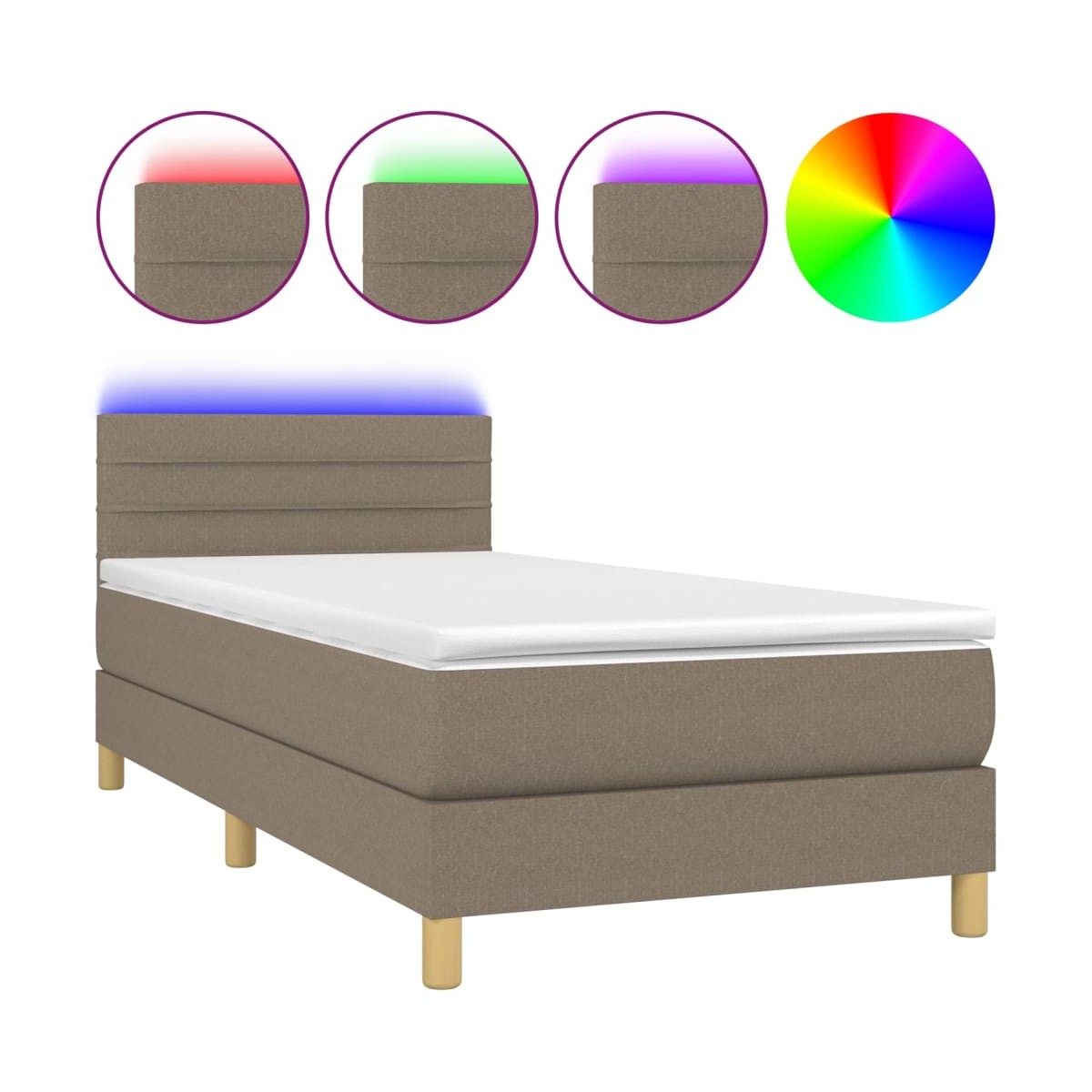 Utiliza esta cama box spring con colchón y LED para disfrutar de un sueño reparador. Es el centro de atención de tu dormitorio. Material de primera calidad: La tela posee un aspecto sencillo y limpio, y es transpirable y duradera.Cabecero práctico: El cabecero de la cama es ajustable en altura según tus preferencias. El cabecero de la cama te proporciona un excelente apoyo para la espalda mientras estás sentado en la cama para leer o ver la televisión.Tira de LED de colores: Alegra la oscuridad con luces LED de colores.Colchón de muelles ensacados: El muelle ensacado individual incorporado es conocido por su altísima calidad, al tiempo que garantiza un alto nivel de durabilidad y adaptabilidad. Puede absorber eficazmente el ruido y los golpes causados por los lanzamientos y los giros.Protector de colchón respetuoso con la piel: El protector de colchón tiene una funda de tejido resistente y respetuoso con la piel, que lo hace suave y confortable. Nota:Por razones de higiene, el colchón no puede devolverse si se ha quitado o abierto el embalaje.Cada producto viene con un manual de montaje en la caja para facilitar el montaje.Únicamente puedes cortar por la parte con el símbolo de las tijeras y únicamente la parte con el USB seguirá funcionando como antes.El producto tiene un conector USB, pero no se incluye la fuente de alimentación USB de 5 V certificada.