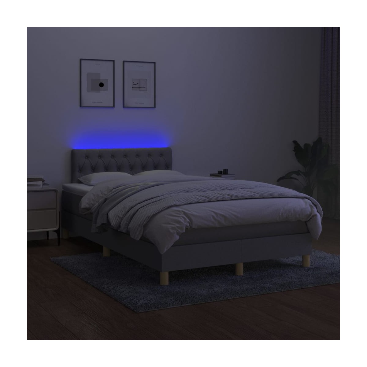 Utiliza esta cama box spring con colchón y LED para disfrutar de un sueño reparador. Es el centro de atención de tu dormitorio. Material de primera calidad: La tela posee un aspecto sencillo y limpio, y es transpirable y duradera.Cabecero práctico: El cabecero de la cama es ajustable en altura según tus preferencias. El cabecero de la cama te proporciona un excelente apoyo para la espalda mientras estás sentado en la cama para leer o ver la televisión.Tira de LED de colores: Alegra la oscuridad con luces LED de colores.Colchón de muelles ensacados: El muelle ensacado individual incorporado es conocido por su altísima calidad, al tiempo que garantiza un alto nivel de durabilidad y adaptabilidad. Puede absorber eficazmente el ruido y los golpes causados por los lanzamientos y los giros.Protector de colchón respetuoso con la piel: El protector de colchón tiene una funda de tejido resistente y respetuoso con la piel, que lo hace suave y confortable. Nota:Por razones de higiene, el colchón no puede devolverse si se ha quitado o abierto el embalaje.Cada producto viene con un manual de montaje en la caja para facilitar el montaje.Únicamente puedes cortar por la parte con el símbolo de las tijeras y únicamente la parte con el USB seguirá funcionando como antes.El producto tiene un conector USB, pero no se incluye la fuente de alimentación USB de 5 V certificada.