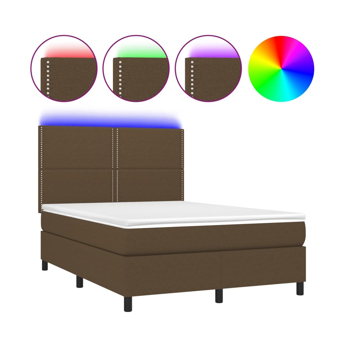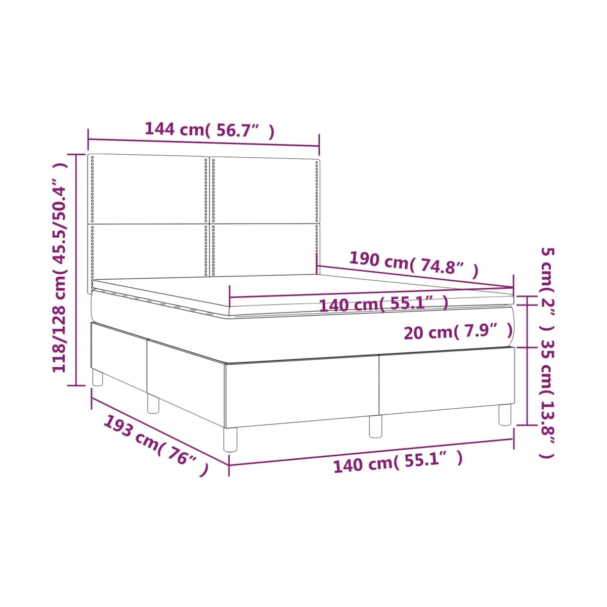Utiliza esta cama box spring con colchón y LED para disfrutar de un sueño reparador. Es el centro de atención de tu dormitorio. Material de primera calidad: La tela posee un aspecto sencillo y limpio, y es transpirable y duradera.Cabecero práctico: El cabecero de la cama es ajustable en altura según tus preferencias. El cabecero de la cama te proporciona un excelente apoyo para la espalda mientras estás sentado en la cama para leer o ver la televisión.Tira de LED de colores: Alegra la oscuridad con luces LED de colores.Colchón de muelles ensacados: El muelle ensacado individual incorporado es conocido por su altísima calidad, al tiempo que garantiza un alto nivel de durabilidad y adaptabilidad. Puede absorber eficazmente el ruido y los golpes causados por los lanzamientos y los giros.Protector de colchón respetuoso con la piel: El protector de colchón tiene una funda de tejido resistente y respetuoso con la piel, que lo hace suave y confortable. Nota:Por razones de higiene, el colchón no puede devolverse si se ha quitado o abierto el embalaje.Únicamente puedes cortar por la parte con el símbolo de las tijeras y únicamente la parte con el USB seguirá funcionando como antes.Cada producto viene con un manual de montaje en la caja para facilitar el montaje.El producto tiene un conector USB, pero no se incluye la fuente de alimentación USB de 5 V certificada.