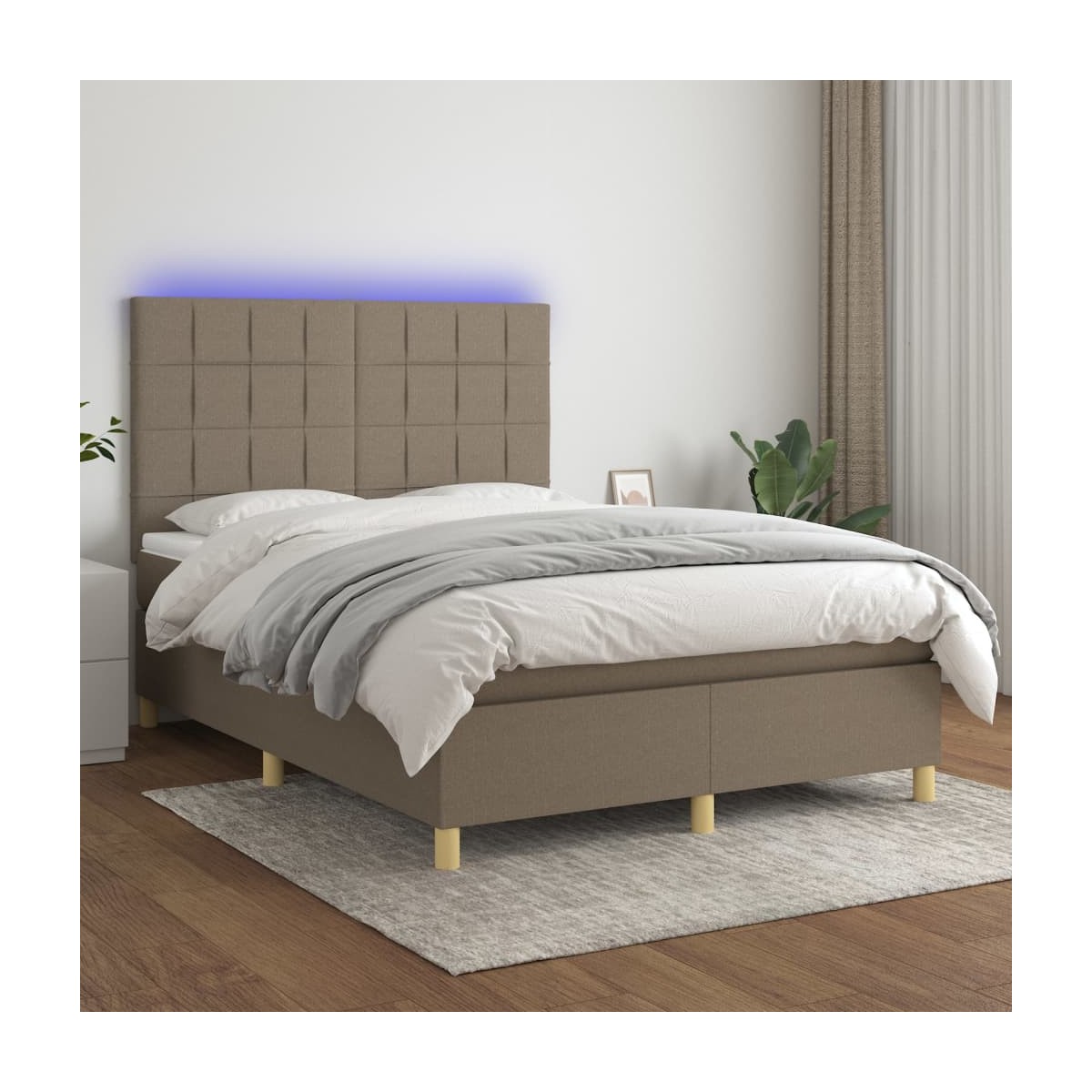 Utiliza esta cama box spring con colchón y LED para disfrutar de un sueño reparador. Es el centro de atención de tu dormitorio. Material de primera calidad: La tela posee un aspecto sencillo y limpio, y es transpirable y duradera.Cabecero práctico: El cabecero de la cama es ajustable en altura según tus preferencias. El cabecero de la cama te proporciona un excelente apoyo para la espalda mientras estás sentado en la cama para leer o ver la televisión.Tira de LED de colores: Alegra la oscuridad con luces LED de colores.Colchón de muelles ensacados: El muelle ensacado individual incorporado es conocido por su altísima calidad, al tiempo que garantiza un alto nivel de durabilidad y adaptabilidad. Puede absorber eficazmente el ruido y los golpes causados por los lanzamientos y los giros.Protector de colchón respetuoso con la piel: El protector de colchón tiene una funda de tejido resistente y respetuoso con la piel, que lo hace suave y confortable. Nota:Por razones de higiene, el colchón no puede devolverse si se ha quitado o abierto el embalaje.Únicamente puedes cortar por la parte con el símbolo de las tijeras y únicamente la parte con el USB seguirá funcionando como antes.Cada producto viene con un manual de montaje en la caja para facilitar el montaje.El producto tiene un conector USB, pero no se incluye la fuente de alimentación USB de 5 V certificada.