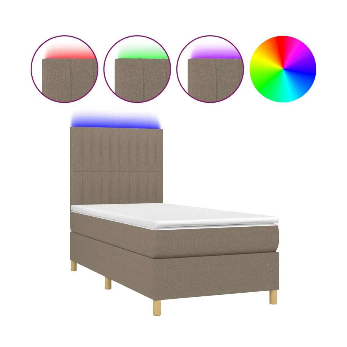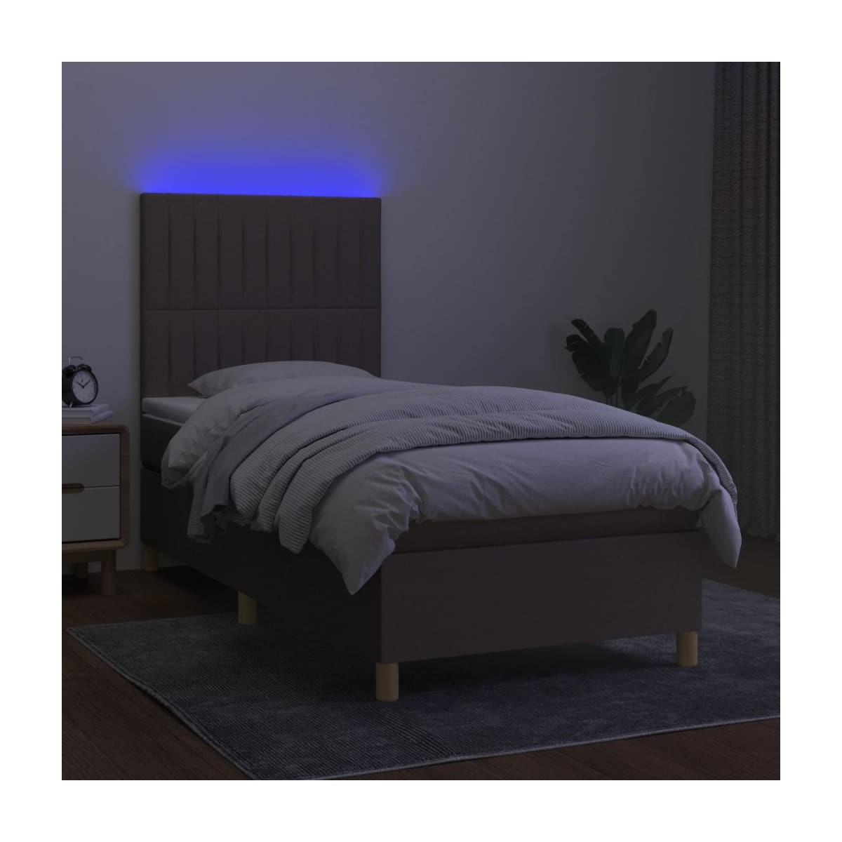 Utiliza esta cama box spring con colchón y LED para disfrutar de un sueño reparador. Es el centro de atención de tu dormitorio. Material de primera calidad: La tela posee un aspecto sencillo y limpio, y es transpirable y duradera.Cabecero práctico: El cabecero de la cama es ajustable en altura según tus preferencias. El cabecero de la cama te proporciona un excelente apoyo para la espalda mientras estás sentado en la cama para leer o ver la televisión.Tira de LED de colores: Alegra la oscuridad con luces LED de colores.Colchón de muelles ensacados: El muelle ensacado individual incorporado es conocido por su altísima calidad, al tiempo que garantiza un alto nivel de durabilidad y adaptabilidad. Puede absorber eficazmente el ruido y los golpes causados por los lanzamientos y los giros.Protector de colchón respetuoso con la piel: El protector de colchón tiene una funda de tejido resistente y respetuoso con la piel, que lo hace suave y confortable. Nota:Por razones de higiene, el colchón no puede devolverse si se ha quitado o abierto el embalaje.Únicamente puedes cortar por la parte con el símbolo de las tijeras y únicamente la parte con el USB seguirá funcionando como antes.Cada producto viene con un manual de montaje en la caja para facilitar el montaje.El producto tiene un conector USB, pero no se incluye la fuente de alimentación USB de 5 V certificada.