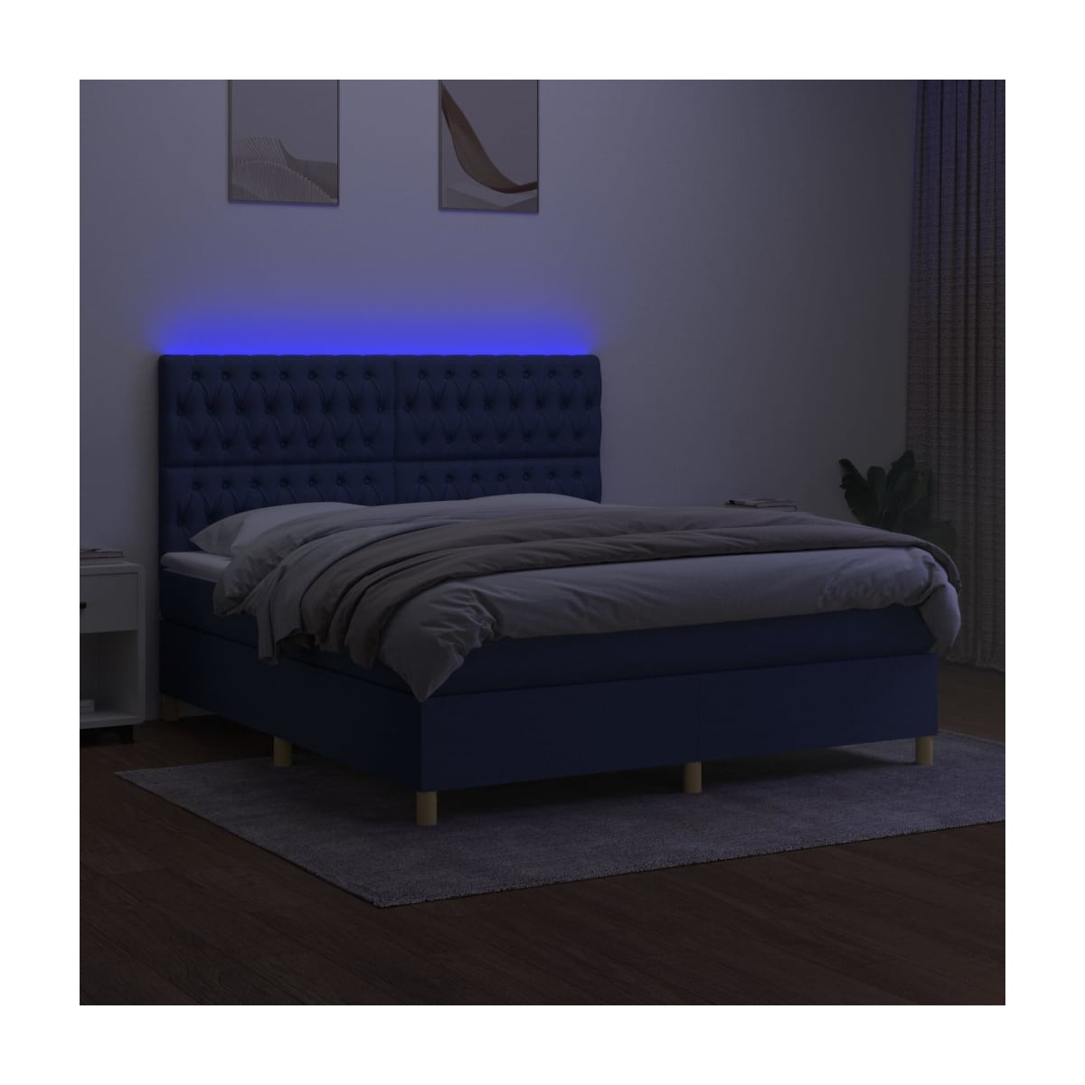 Utiliza esta cama box spring con colchón y LED para disfrutar de un sueño reparador. Es el centro de atención de tu dormitorio. Material de primera calidad: La tela posee un aspecto sencillo y limpio, y es transpirable y duradera.Cabecero práctico: El cabecero de la cama es ajustable en altura según tus preferencias. El cabecero de la cama te proporciona un excelente apoyo para la espalda mientras estás sentado en la cama para leer o ver la televisión.Tira de LED de colores: Alegra la oscuridad con luces LED de colores.Colchón de muelles ensacados: El muelle ensacado individual incorporado es conocido por su altísima calidad, al tiempo que garantiza un alto nivel de durabilidad y adaptabilidad. Puede absorber eficazmente el ruido y los golpes causados por los lanzamientos y los giros.Protector de colchón respetuoso con la piel: El protector de colchón tiene una funda de tejido resistente y respetuoso con la piel, que lo hace suave y confortable. Nota:Por razones de higiene, el colchón no puede devolverse si se ha quitado o abierto el embalaje.Únicamente puedes cortar por la parte con el símbolo de las tijeras y únicamente la parte con el USB seguirá funcionando como antes.Cada producto viene con un manual de montaje en la caja para facilitar el montaje.El producto tiene un conector USB, pero no se incluye la fuente de alimentación USB de 5 V certificada.
