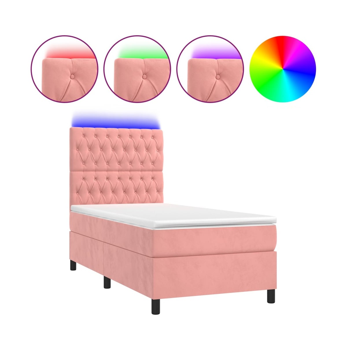 Utiliza esta cama box spring con colchón y LED para disfrutar de un sueño reparador. Es el centro de atención de tu dormitorio. Terciopelo suave: El terciopelo es una tela suave y lujosa, reconocida por su denso pelo de fibras cortadas de forma uniforme que tienen una suave pelusa. La tela de terciopelo posee un característico y suave tacto, lo que hace que sea cómoda al tacto.Cabecero práctico: El cabecero de la cama es ajustable en altura según tus preferencias. El cabecero de la cama te proporciona un excelente apoyo para la espalda mientras estás sentado en la cama para leer o ver la televisión.Tira de LED de colores: Alegra la oscuridad con luces LED de colores.Colchón de muelles ensacados: El muelle ensacado individual incorporado es conocido por su altísima calidad, al tiempo que garantiza un alto nivel de durabilidad y adaptabilidad. Puede absorber eficazmente el ruido y los golpes causados por los lanzamientos y los giros.Protector de colchón respetuoso con la piel: El protector de colchón tiene una funda de tejido resistente y respetuoso con la piel, que lo hace suave y confortable. Nota:Por razones de higiene, el colchón no puede devolverse si se ha quitado o abierto el embalaje.Únicamente puedes cortar por la parte con el símbolo de las tijeras y únicamente la parte con el USB seguirá funcionando como antes.Cada producto viene con un manual de montaje en la caja para facilitar el montaje.El producto tiene un conector USB, pero no se incluye la fuente de alimentación USB de 5 V certificada.