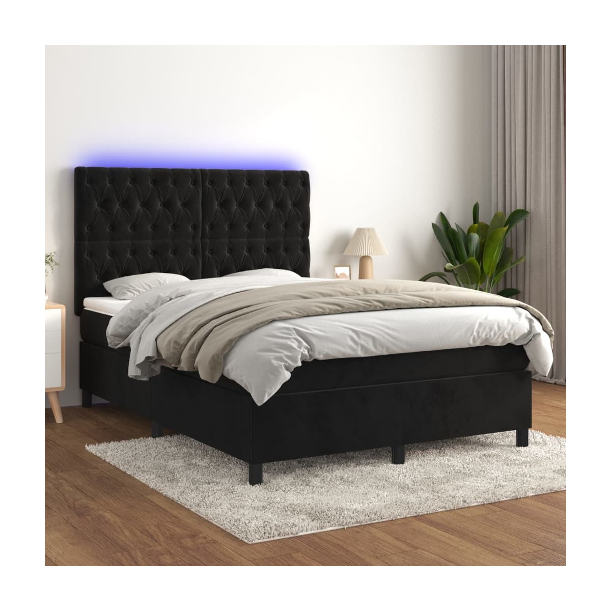 Utiliza esta cama box spring con colchón y LED para disfrutar de un sueño reparador. Es el centro de atención de tu dormitorio. Terciopelo suave: El terciopelo es una tela suave y lujosa, reconocida por su denso pelo de fibras cortadas de forma uniforme que tienen una suave pelusa. La tela de terciopelo posee un característico y suave tacto, lo que hace que sea cómoda al tacto.Cabecero práctico: El cabecero de la cama es ajustable en altura según tus preferencias. El cabecero de la cama te proporciona un excelente apoyo para la espalda mientras estás sentado en la cama para leer o ver la televisión.Tira de LED de colores: Alegra la oscuridad con luces LED de colores.Colchón de muelles ensacados: El muelle ensacado individual incorporado es conocido por su altísima calidad, al tiempo que garantiza un alto nivel de durabilidad y adaptabilidad. Puede absorber eficazmente el ruido y los golpes causados por los lanzamientos y los giros.Protector de colchón respetuoso con la piel: El protector de colchón tiene una funda de tejido resistente y respetuoso con la piel, que lo hace suave y confortable. Nota:Por razones de higiene, el colchón no puede devolverse si se ha quitado o abierto el embalaje.Únicamente puedes cortar por la parte con el símbolo de las tijeras y únicamente la parte con el USB seguirá funcionando como antes.Cada producto viene con un manual de montaje en la caja para facilitar el montaje.El producto tiene un conector USB, pero no se incluye la fuente de alimentación USB de 5 V certificada.