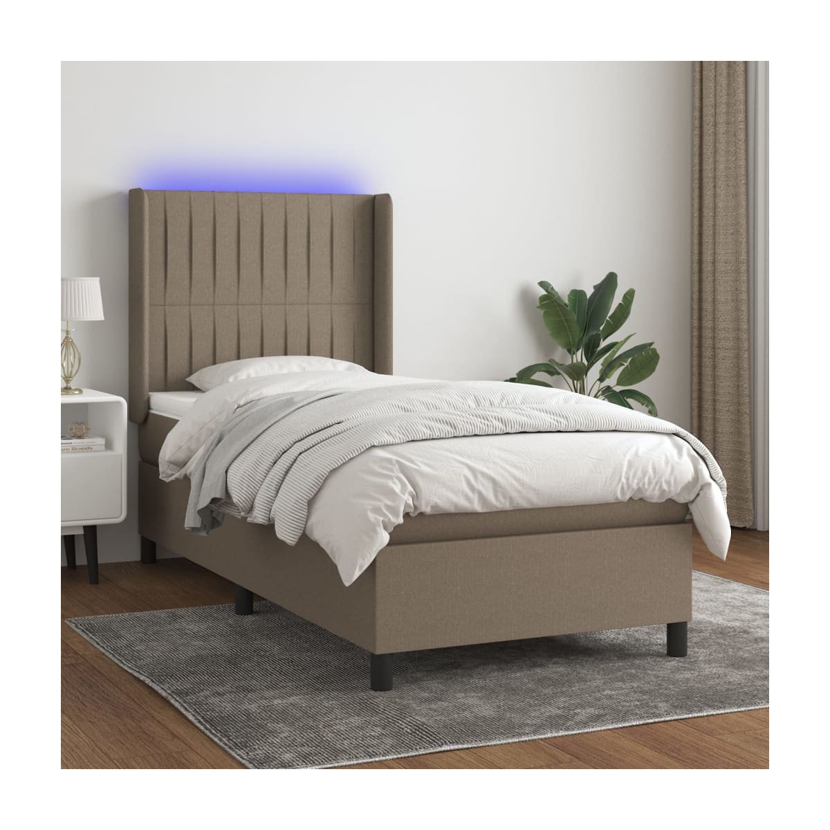 Utiliza esta cama tipo box spring con colchón y luces LED para disfrutar de un sueño reparador. Será el centro de atención del dormitorio. Material de primera calidad: La tela posee un aspecto sencillo y limpio, y es transpirable y duradera.Cabecero práctico: El cabecero de la cama es ajustable en altura según tus preferencias. El cabecero de la cama te proporciona un excelente apoyo para la espalda mientras estás sentado en la cama para leer o ver la televisión.Tira de LED de colores: Alegra la oscuridad con luces LED de colores.Colchón de muelles ensacados: El muelle ensacado individual incorporado es conocido por su altísima calidad, al tiempo que garantiza un alto nivel de durabilidad y adaptabilidad. Puede absorber eficazmente el ruido y los golpes causados por los lanzamientos y los giros.Protector de colchón respetuoso con la piel: El protector de colchón tiene una funda de tejido resistente y respetuoso con la piel, que lo hace suave y confortable. Nota: La lona impermeable no está incluidaPor razones de higiene, el colchón no puede devolverse si se ha quitado o abierto el embalaje.Únicamente puedes cortar por la parte con el símbolo de las tijeras y únicamente la parte con el USB seguirá funcionando como antes.Cada producto viene con un manual de montaje en la caja para facilitar el montaje.El producto tiene un conector USB, pero no se incluye la fuente de alimentación USB de 5 V certificada.