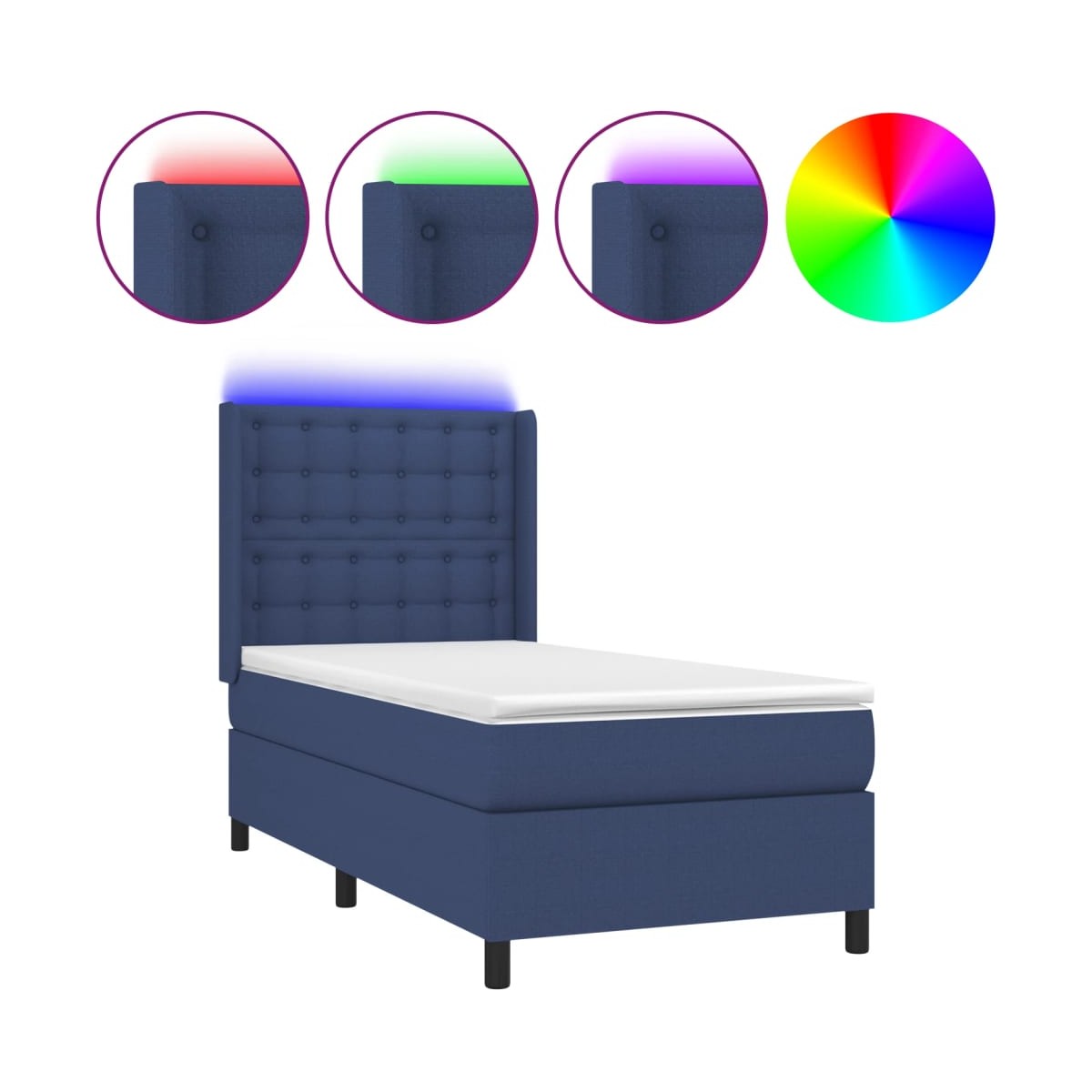 Utiliza esta cama tipo box spring con colchón y luces LED para disfrutar de un sueño reparador. Será el centro de atención del dormitorio. Material de primera calidad: La tela posee un aspecto sencillo y limpio, y es transpirable y duradera.Cabecero práctico: El cabecero de la cama es ajustable en altura según tus preferencias. El cabecero de la cama te proporciona un excelente apoyo para la espalda mientras estás sentado en la cama para leer o ver la televisión.Tira de LED de colores: Alegra la oscuridad con luces LED de colores.Colchón de muelles ensacados: El muelle ensacado individual incorporado es conocido por su altísima calidad, al tiempo que garantiza un alto nivel de durabilidad y adaptabilidad. Puede absorber eficazmente el ruido y los golpes causados por los lanzamientos y los giros.Protector de colchón respetuoso con la piel: El protector de colchón tiene una funda de tejido resistente y respetuoso con la piel, que lo hace suave y confortable. Nota: La lona impermeable no está incluidaPor razones de higiene, el colchón no puede devolverse si se ha quitado o abierto el embalaje.Únicamente puedes cortar por la parte con el símbolo de las tijeras y únicamente la parte con el USB seguirá funcionando como antes.Cada producto viene con un manual de montaje en la caja para facilitar el montaje.El producto tiene un conector USB, pero no se incluye la fuente de alimentación USB de 5 V certificada.